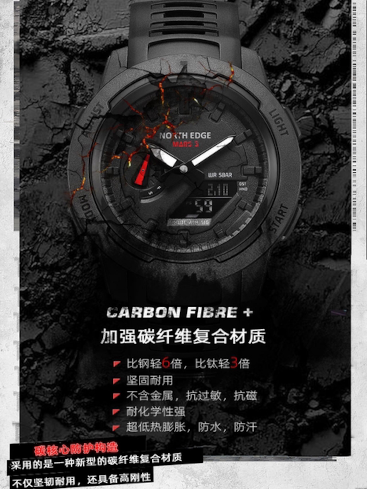 水泳やアウトドアスポーツに最適なNORTH EDGE男性アウトドアスポーツ時計のご紹介です。この時計は、水泳やダイビングでの使用にも対応した防水設計であり、耐衝撃性にも優れています。さらに、学生やアウトドア愛好家に人気の電子時計で、多機能や耐久性も兼ね備えています。MARS 3というシリーズは、スタイリッシュなデザインと高精度な時間表示を提供し、常に正確な時間を計測してくれる頼もしい一品です。