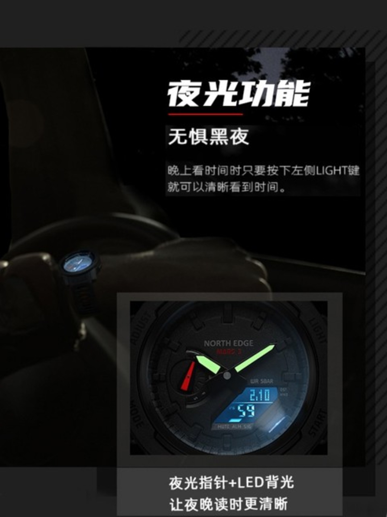 NORTH EDGE男性アウトドアスポーツ時計水泳防水電子時計男性学生電子時計MARS 3