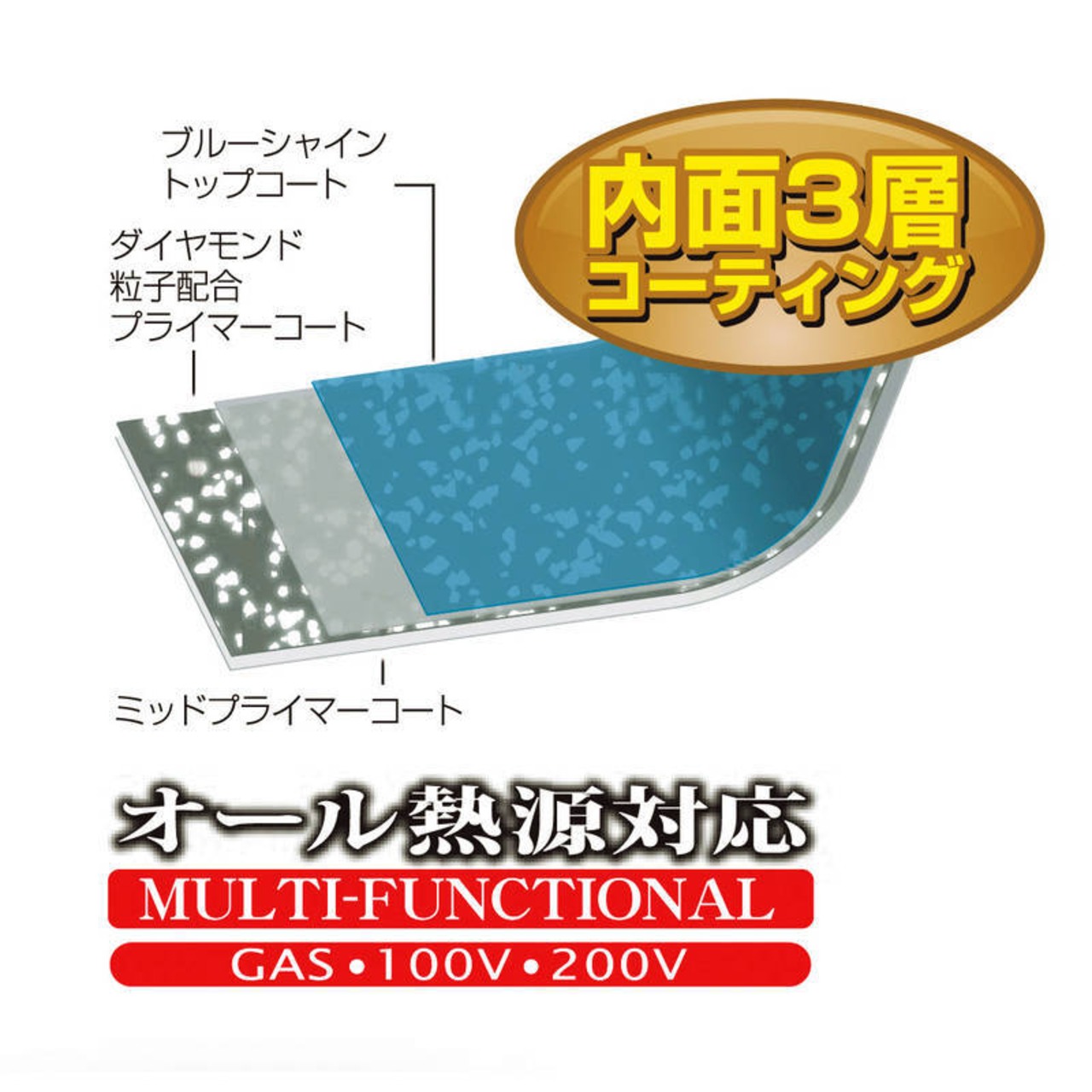 内面3層コーティングで耐久性抜群!・金属ヘラも使える強力コーティング・収納に便利な着脱ハンドル・オール熱源対応