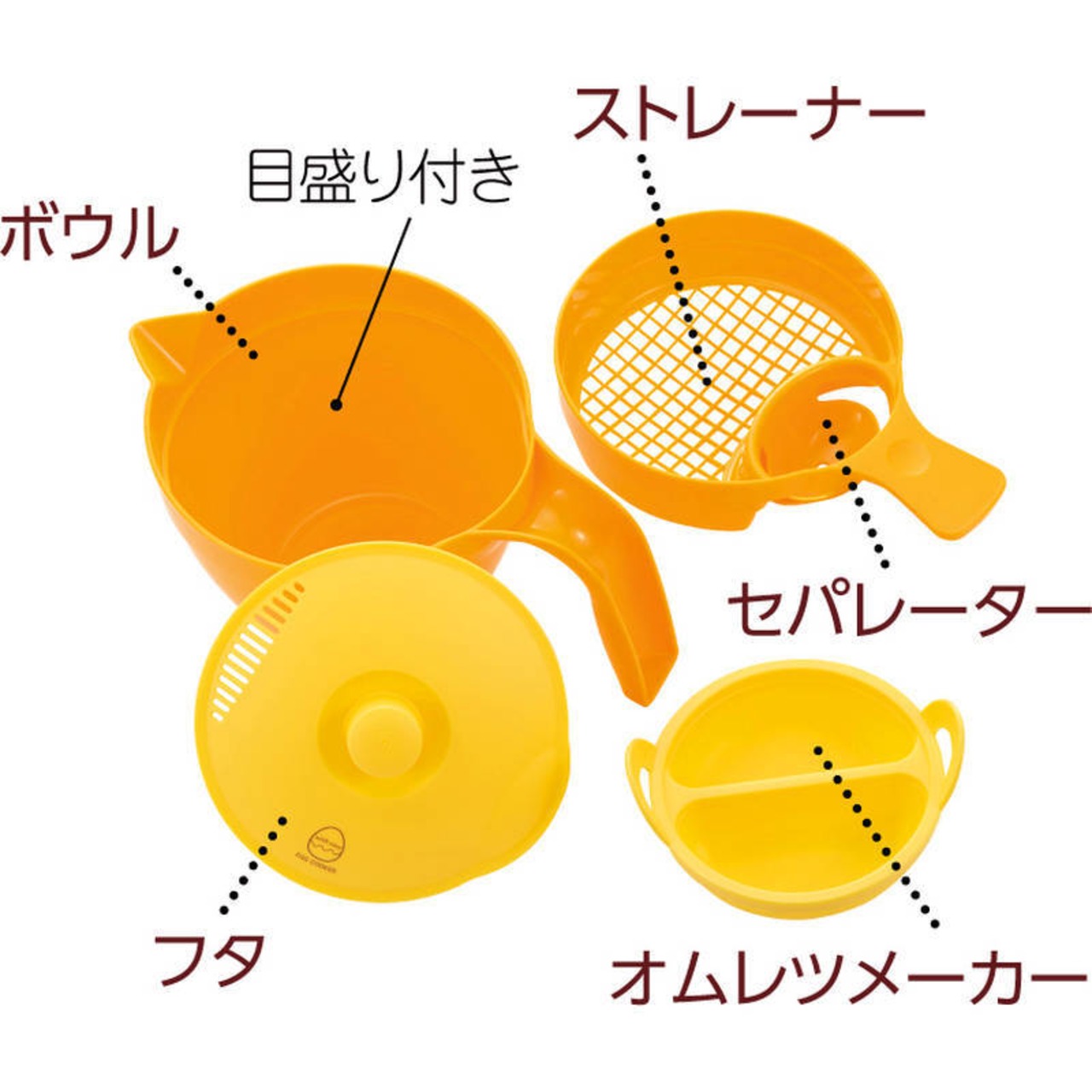 ボウル:203×134×121mm、ストレーナー、オムレツメーカー、フタ