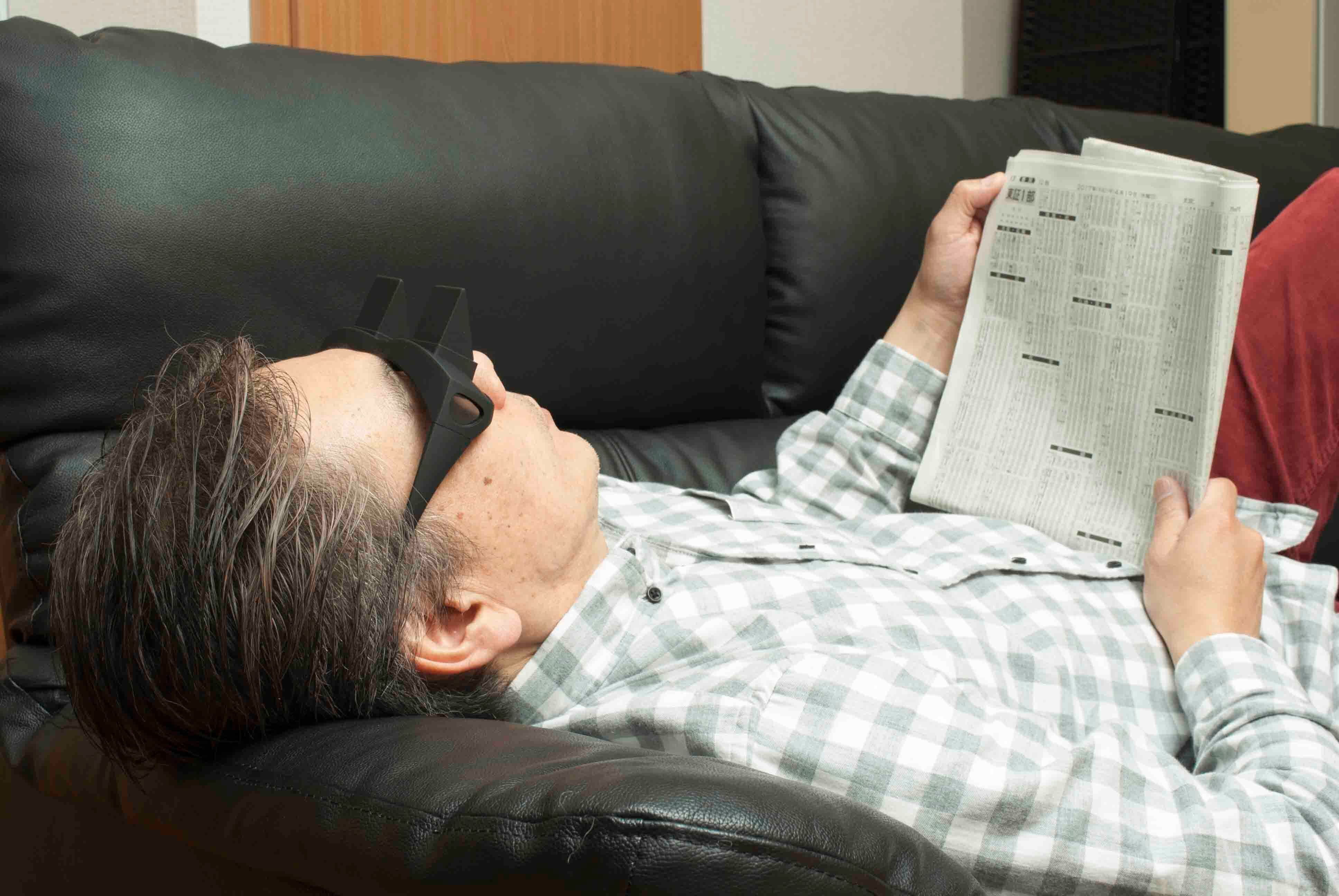*寝ながら読書、寝ながらテレビやスマホなど、仰向けになってリラックスした状態で楽しめる不思議なメガネ
