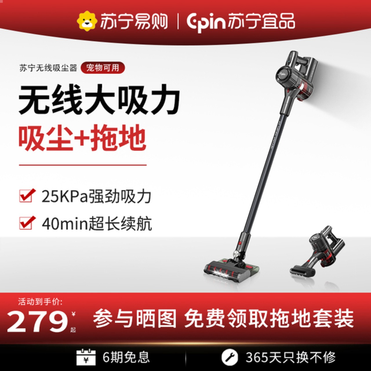 蘇寧宜品ワイヤレス掃除機大吸引力家庭用軽量手持ち式猫毛カーペット強力吸引牽引一体機