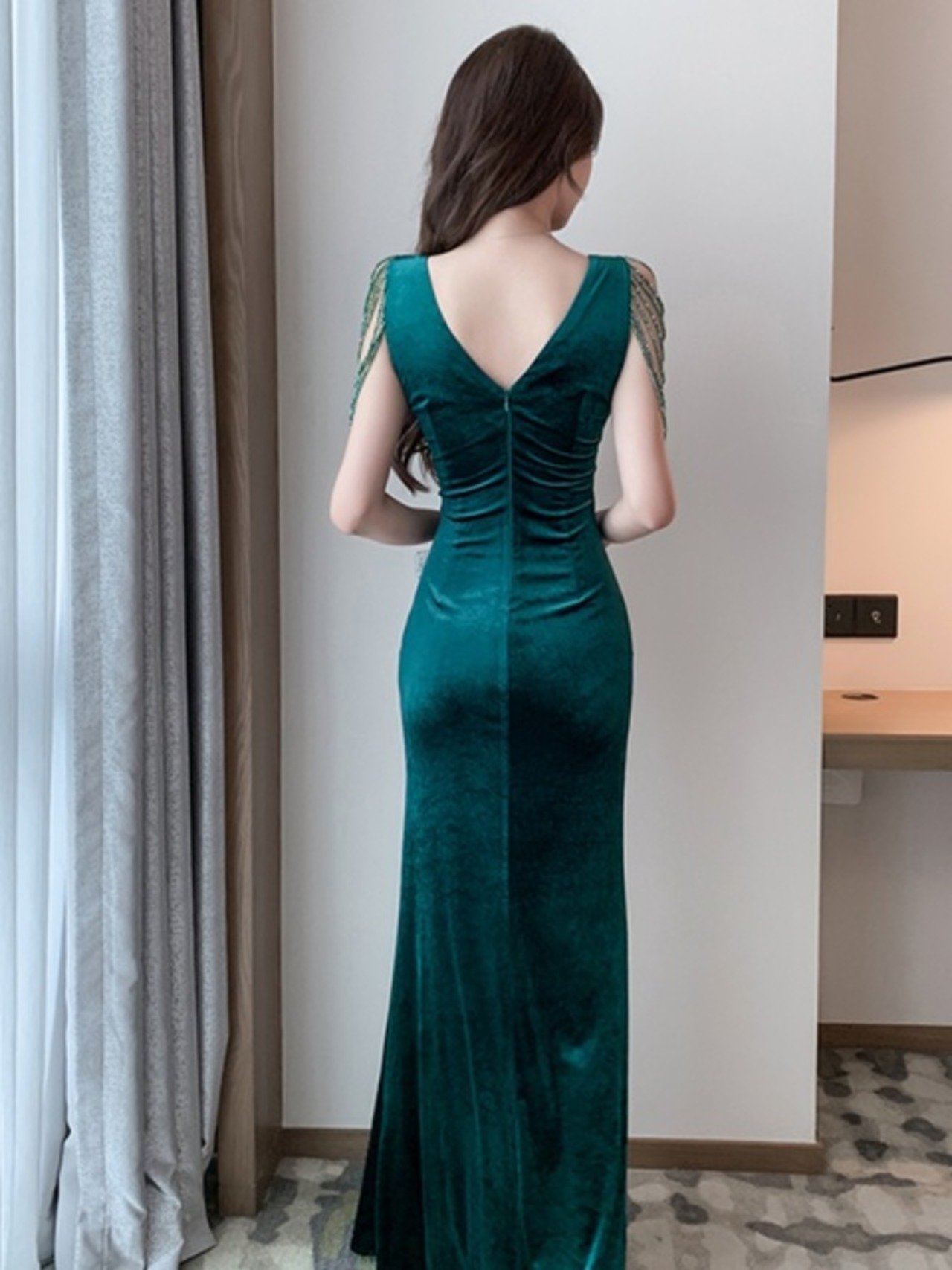 気質セクシーイブニングドレスワンピースキャバクラの仕事着spa沐足サウナマッサージ技師服ロングスカート