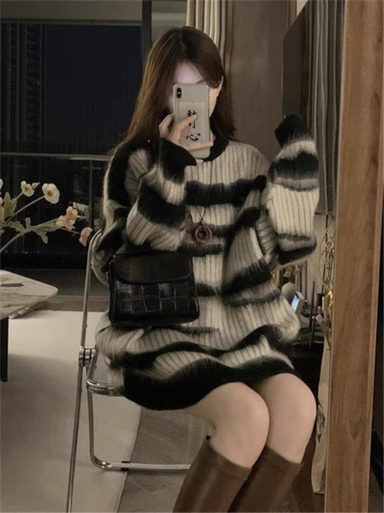 日本のレトロな雰囲気が漂う、ゼブラ柄のニットセーター。女性らしいゆったりとした気だるいデザイン感が魅力です。厚手の素材で、寒い冬でも暖かくおしゃれに過ごせます。トレンドの大きめのサイズ感で、体型カバーもできますよ。カジュアルなコーディネートや、スカートと合わせたフェミニンなスタイリングにもぴったりです。