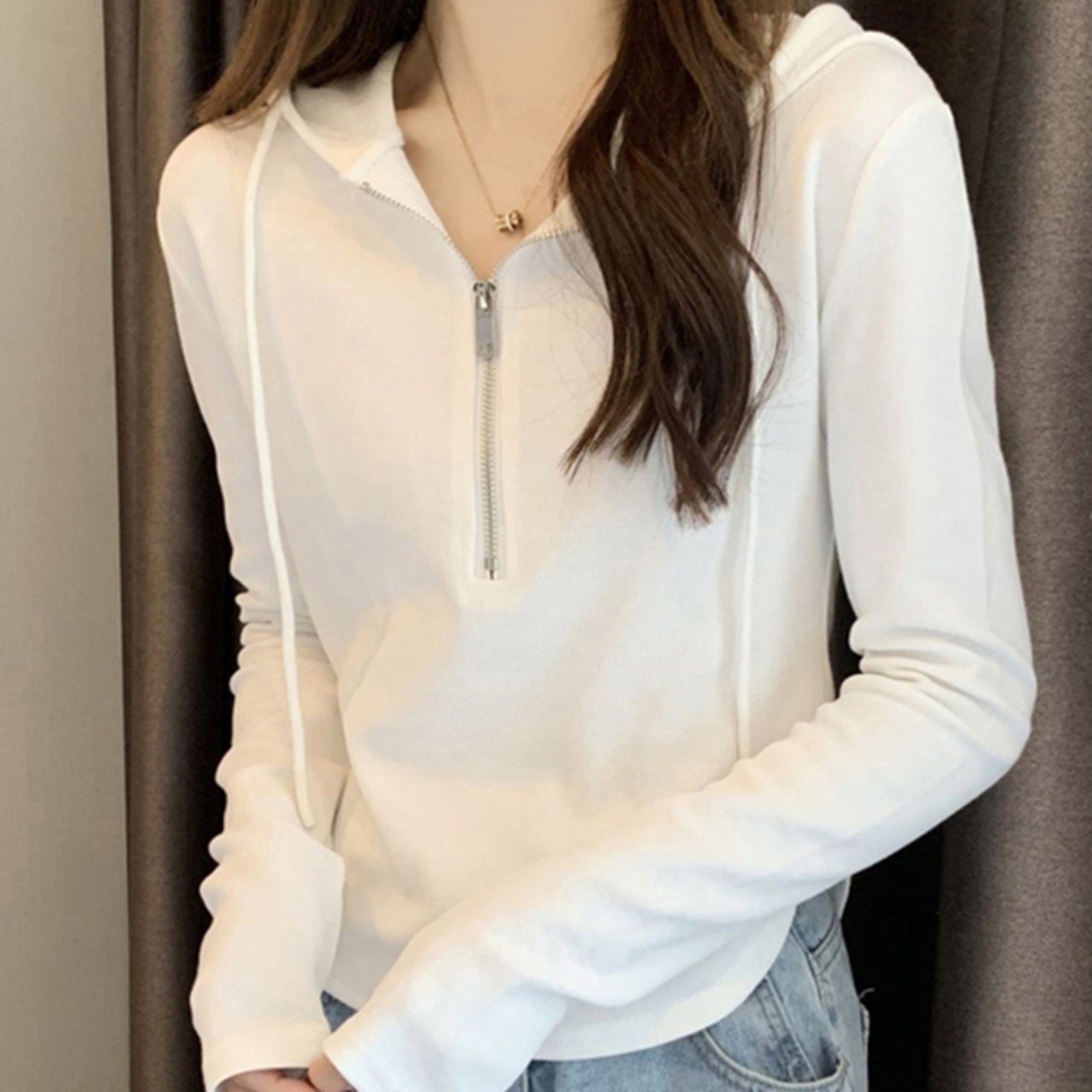 連帽ショート丈衛衣女性長袖春秋2023新型韓国版デザイン感小衆薄型ファッションファスナー上着
