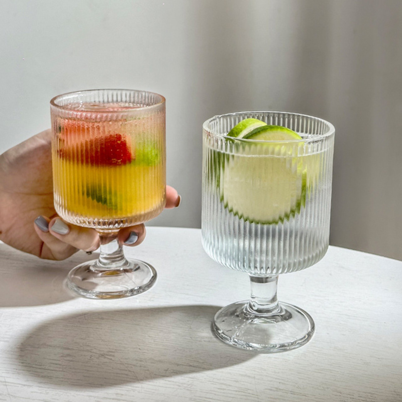 ins高ルックス値縦縞ハイキックグラスジュースカップ飲料コーヒーグラスアイスクリームカップ果実酒赤ワイングラス