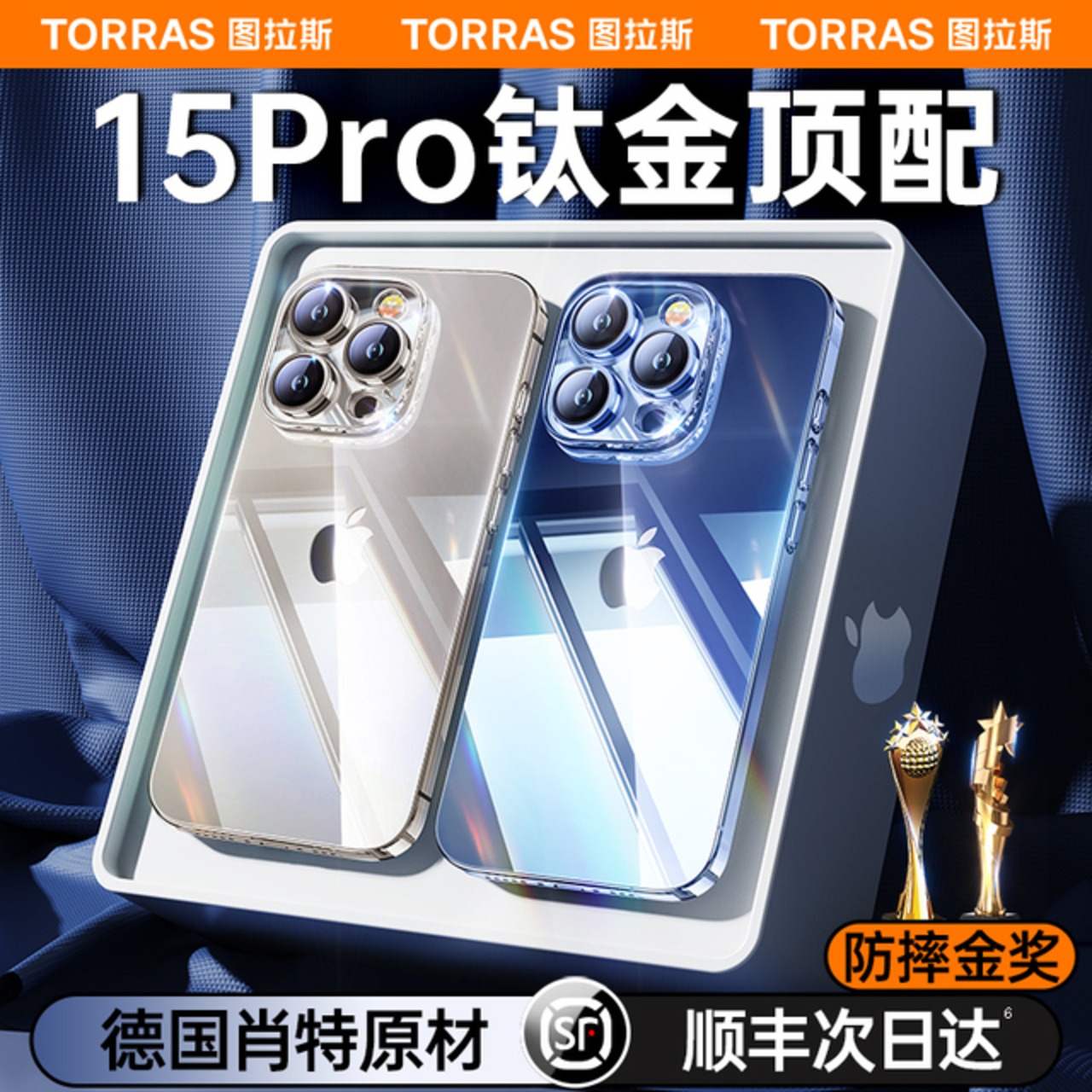 ドイツのショット素材に適用アップルの15 ProMax携帯ケース新型iPhone 15 Pro透明ガラス落下防止全包レンズ保護カバー