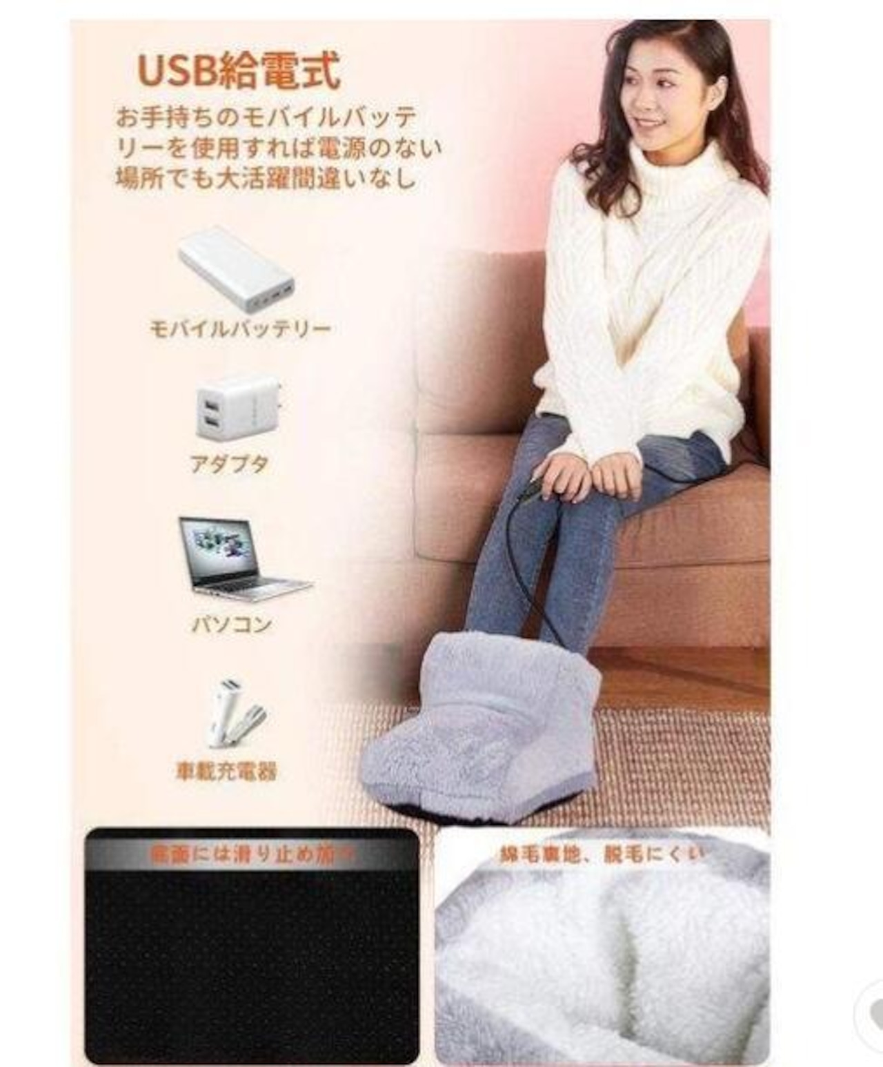 USB充電した湯たんぽをフットウォーマーに入れると、足湯のようなじ?んわりとした暖かさが体感できます。