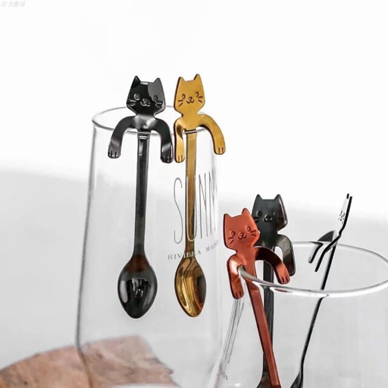 クリエイティブキャラクター304猫スプーン業務用掛け式カップスプーン家庭用コーヒースプーン攪拌スプーンステンレス食器