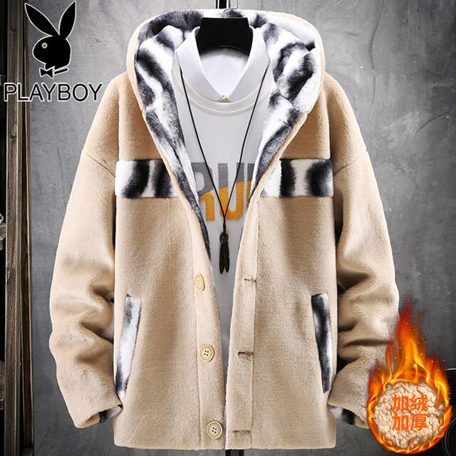 プレイボーイプラス厚手金ベルベットジャケットメンズ2023秋冬新作服ラムウールコートラッシュ