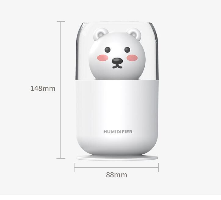 すっきりとしたデザインの卓上加湿器です。コンパクトながらも300mlのタンク容量で、連続加湿が可能です。また、LEDランプが付いており、夜間も明るくお部屋を彩ります。さらに、気化式なので、水が漏れる心配もありません。USB接続なので、オフィスや車の中でもご使用いただけます。