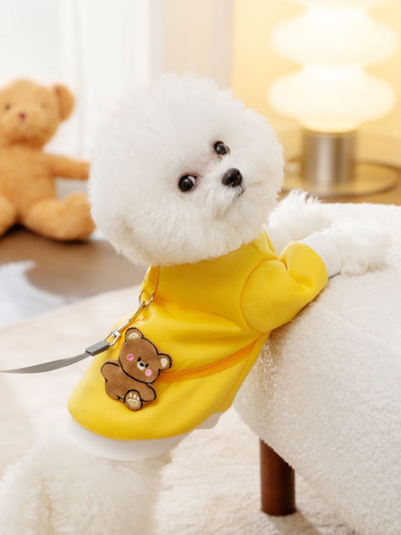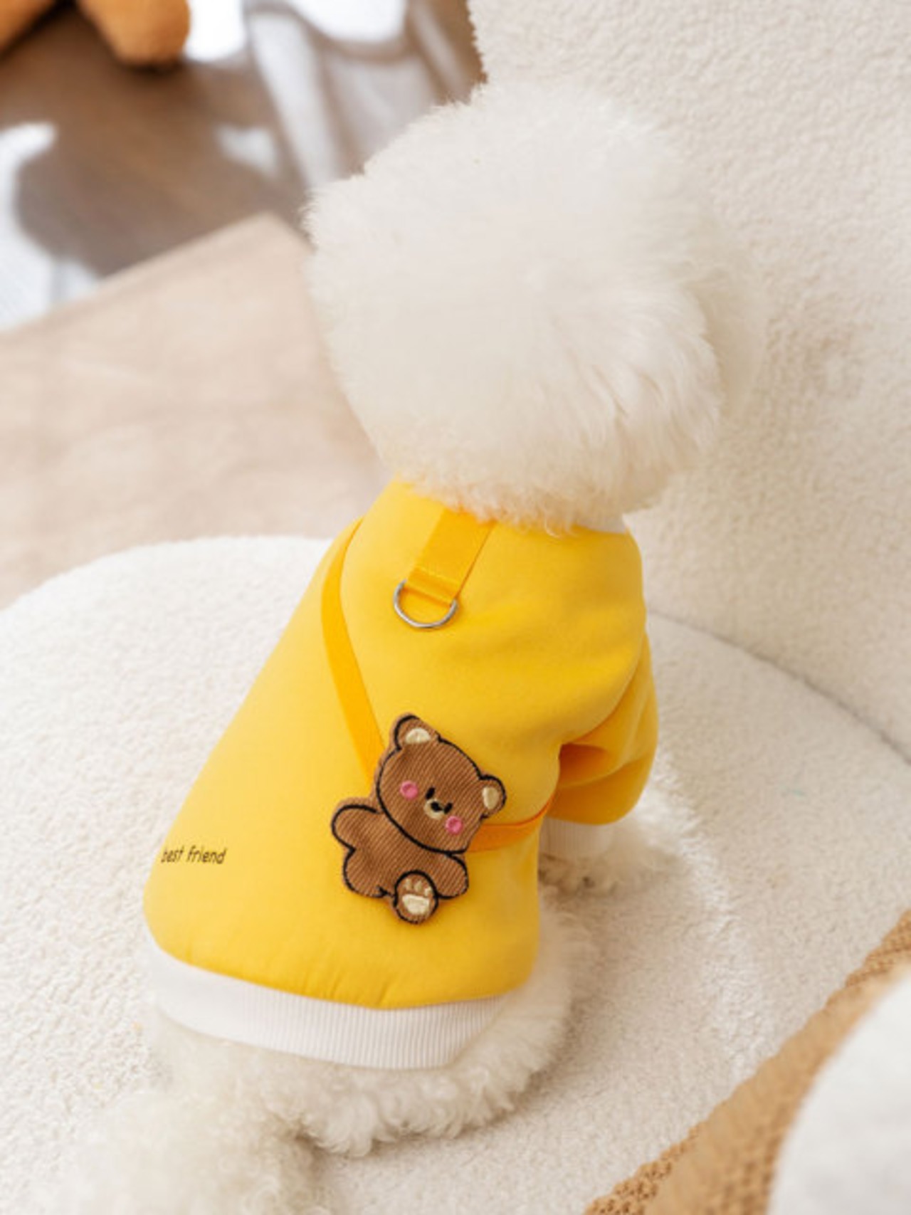 かわいい子犬のショルダーバッグ、クマのスウェットシャツ、テディビション、中小型犬、子犬、猫、トラクションバックル付きの服