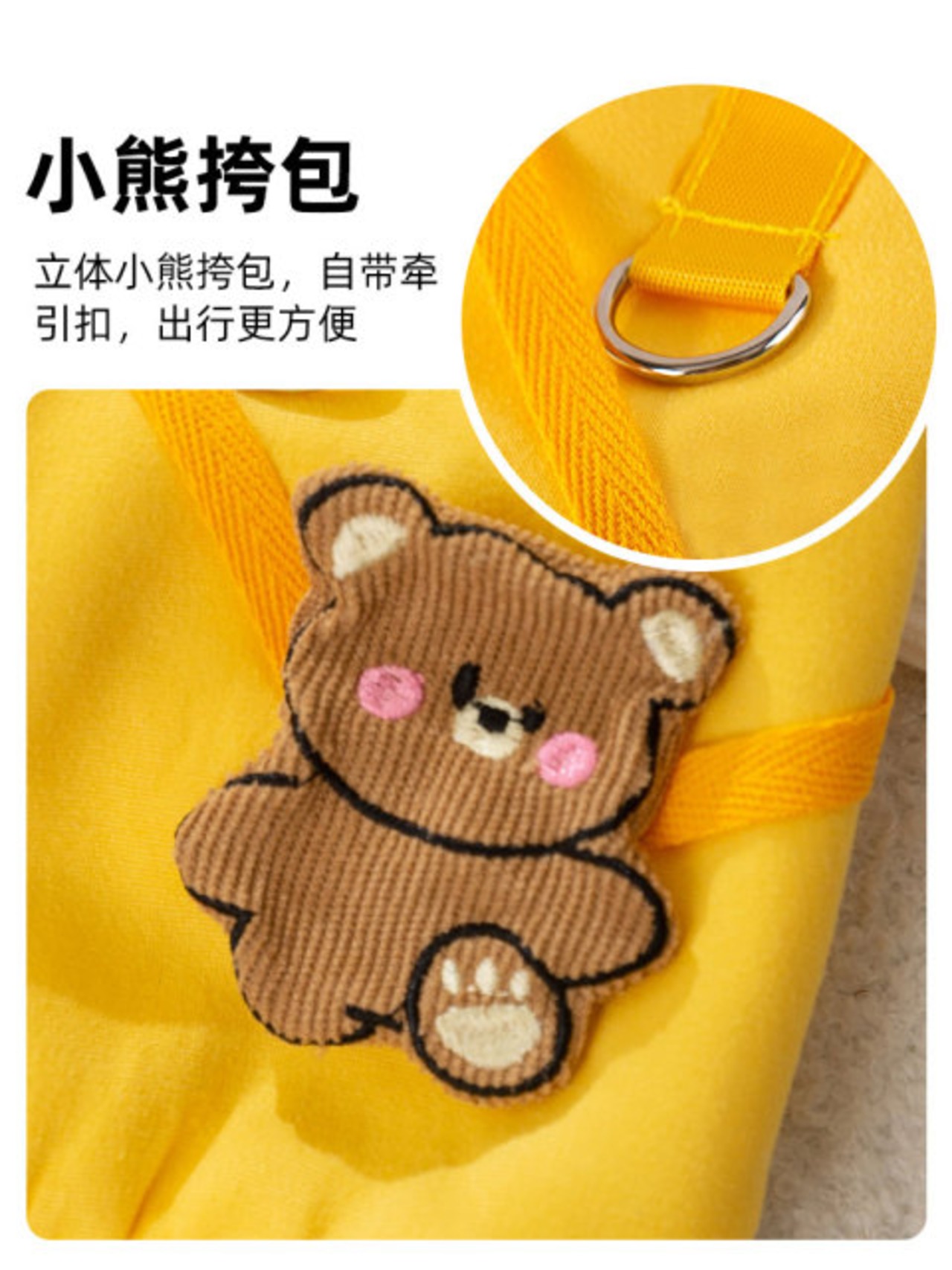 このバッグは、おしゃれでかわいらしいデザインが特徴です。クマのプリントがあしらわれたスウェットシャツは、ペットの個性を引き立てることでしょう。さらに、トラクションバックルが付いているため、お散歩中の安全性も確保できます。