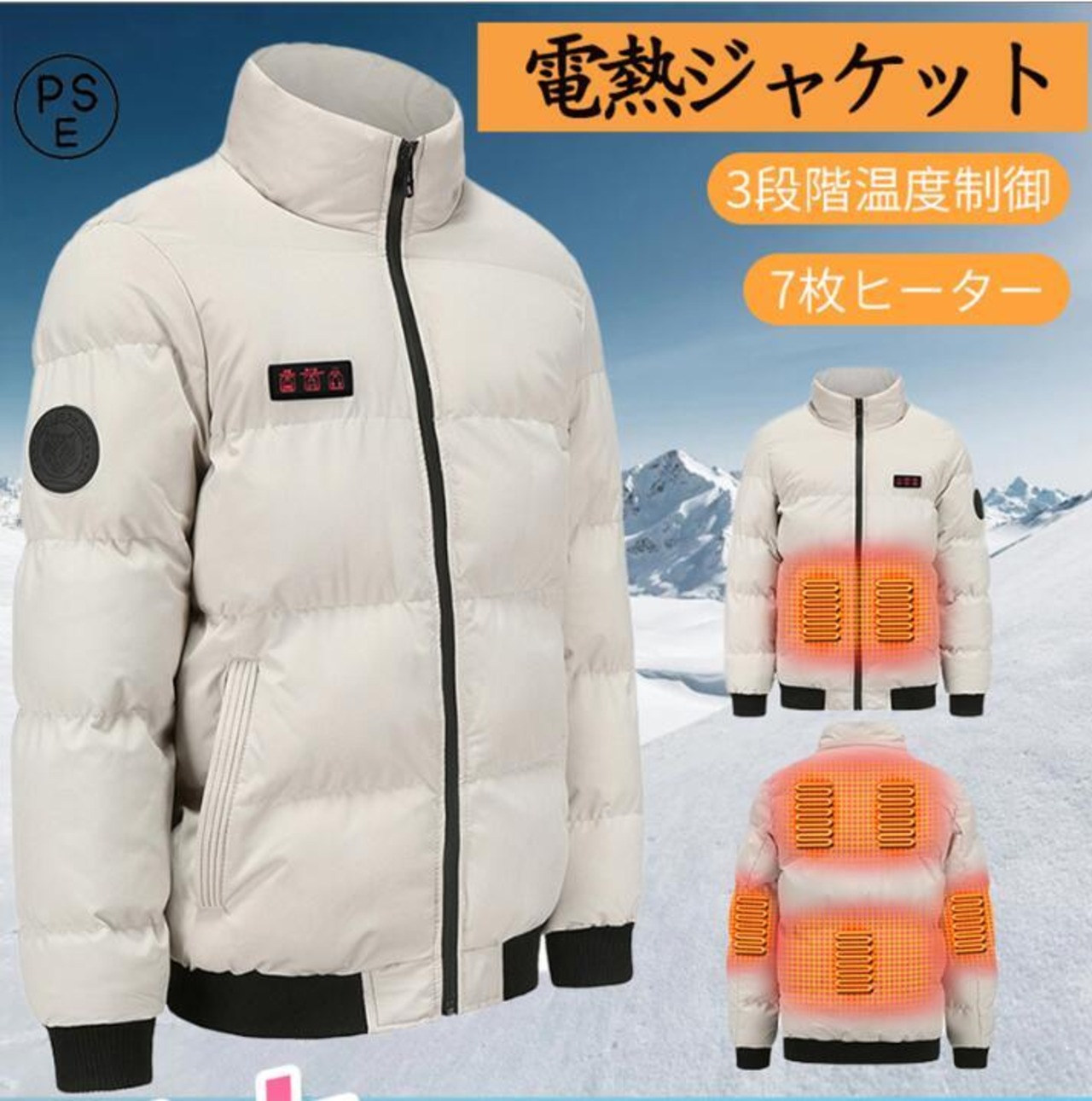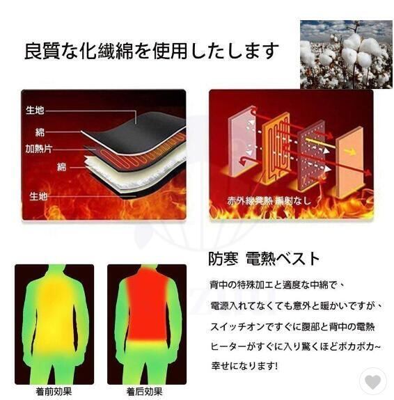 電熱ジャケット 長袖 電熱ベスト 繊維ヒーター 7箇所発熱 USB充電式 暖房服 防寒 ヒーター付き防寒着