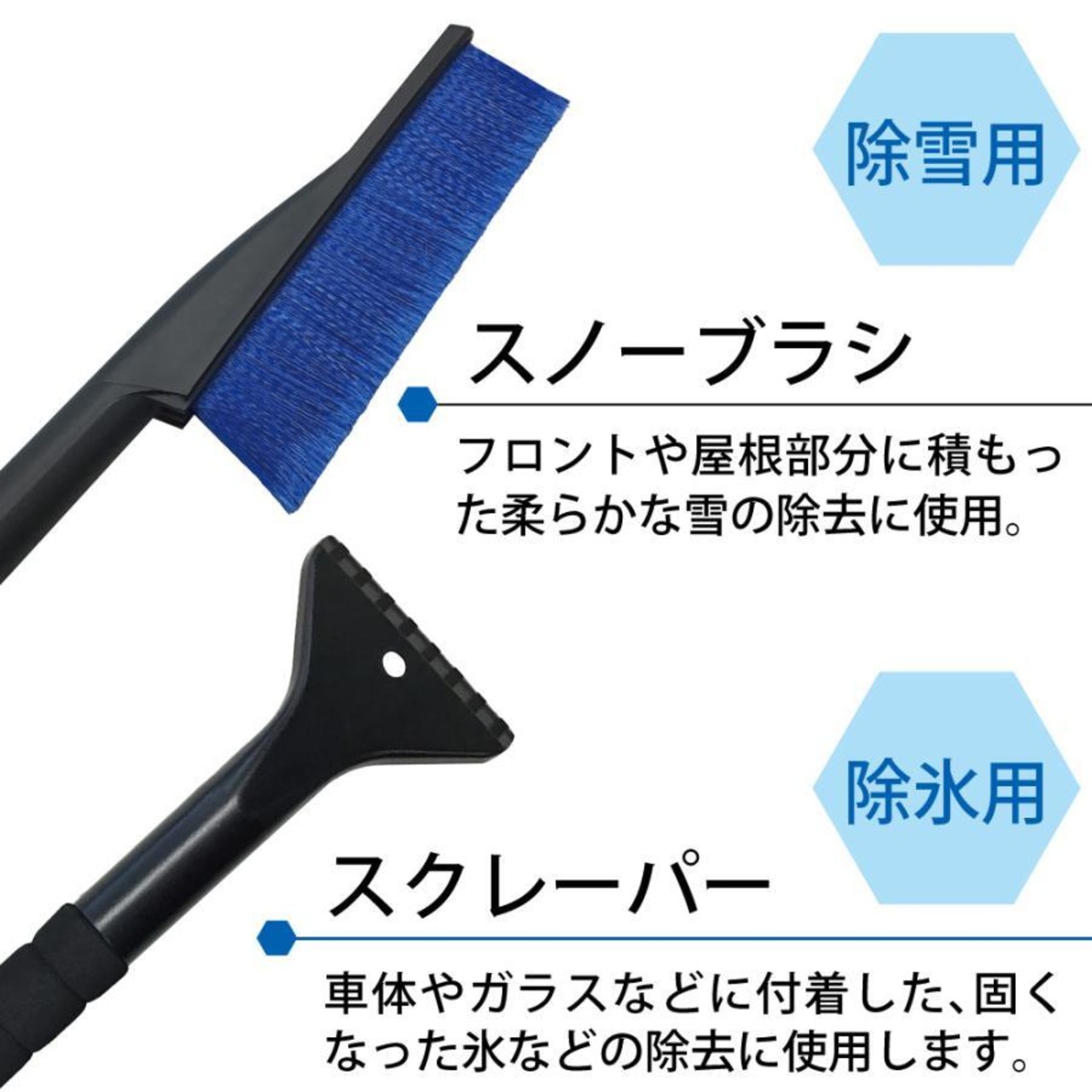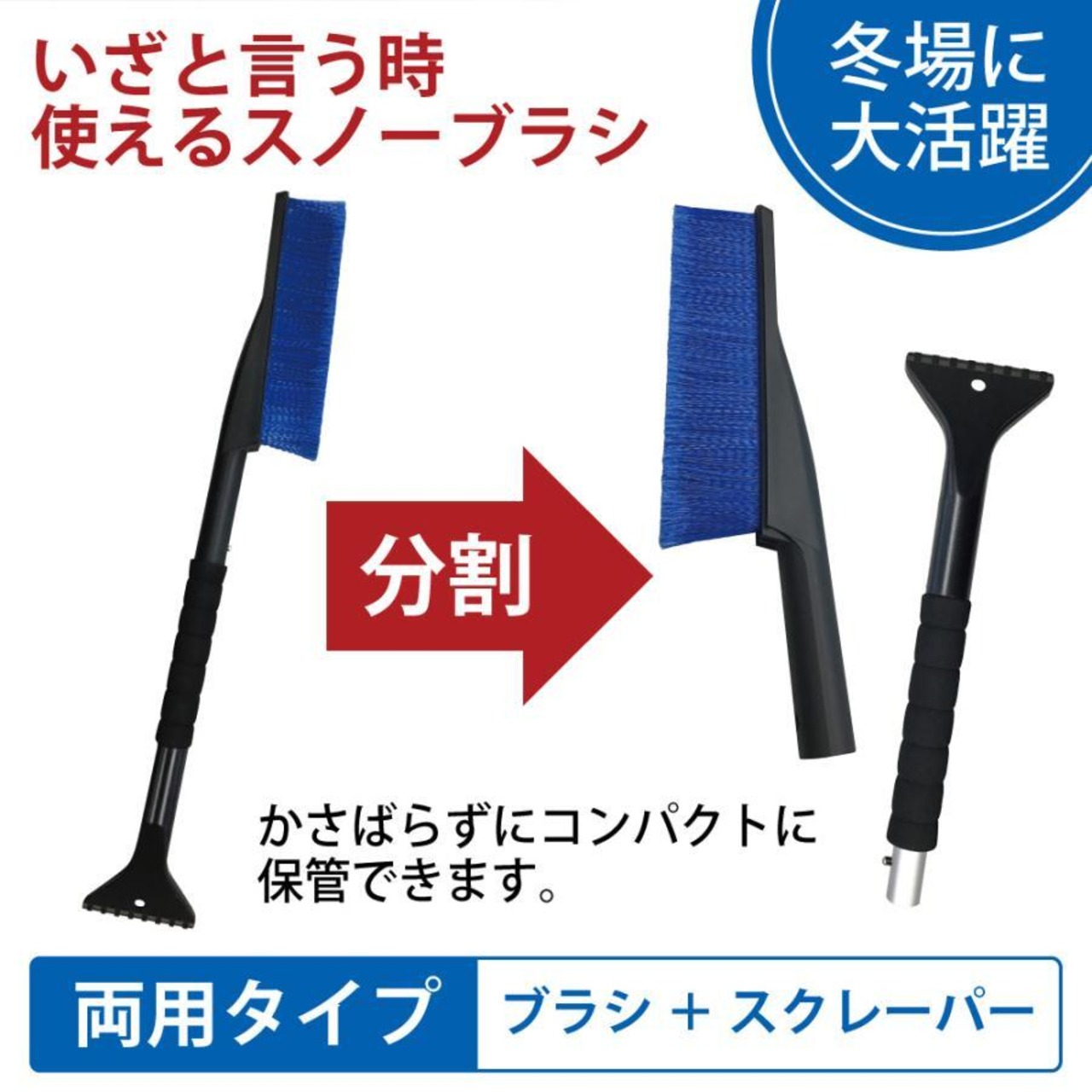 ・スノーブラシとスノースクレーバーの1台2役で便利です。