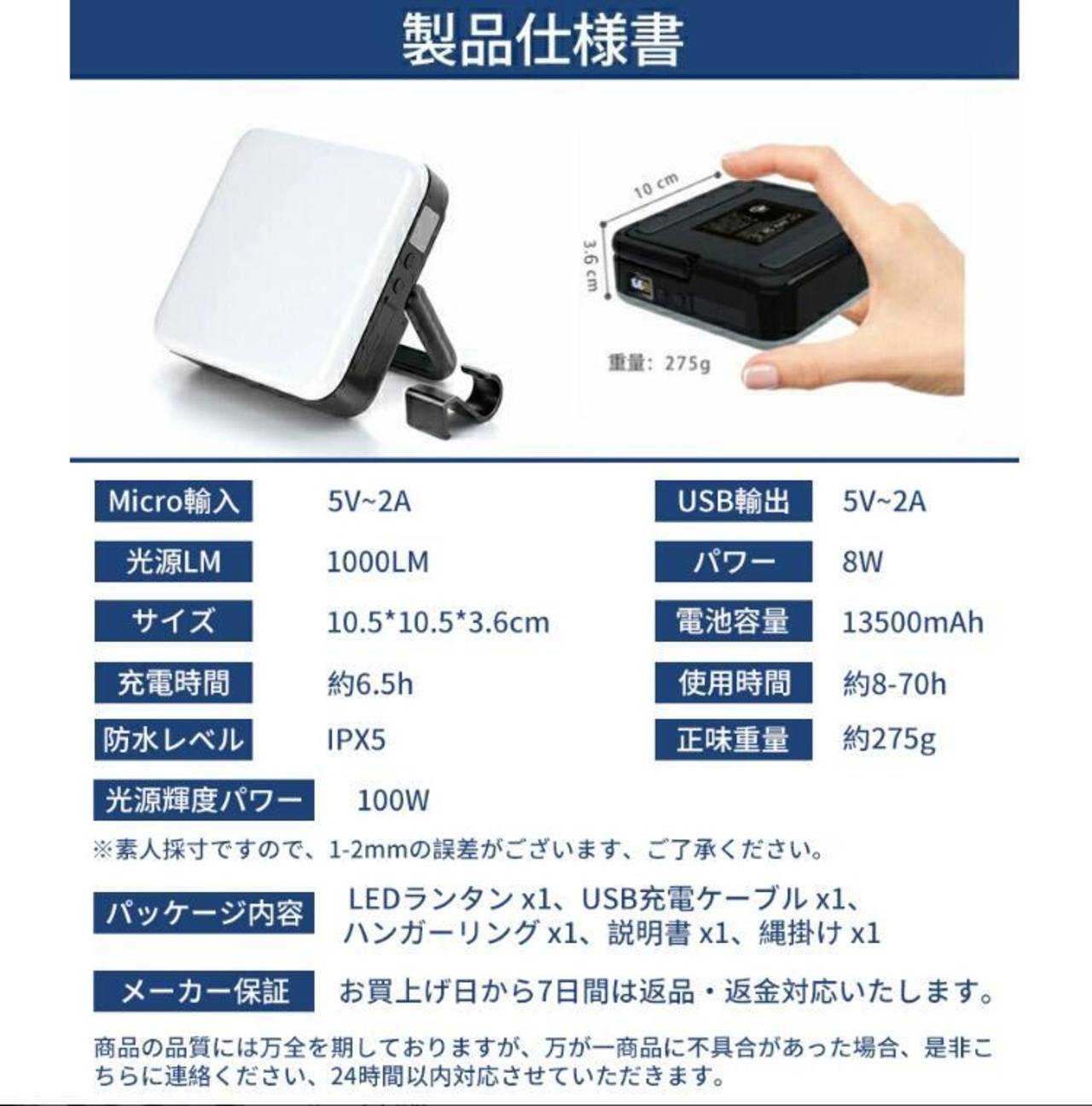 LEDランタン 磁気吸着 充電式 13500mAh 1000ルーメン pse認証済み モバイルバッテリー機能付き 明るい 防水