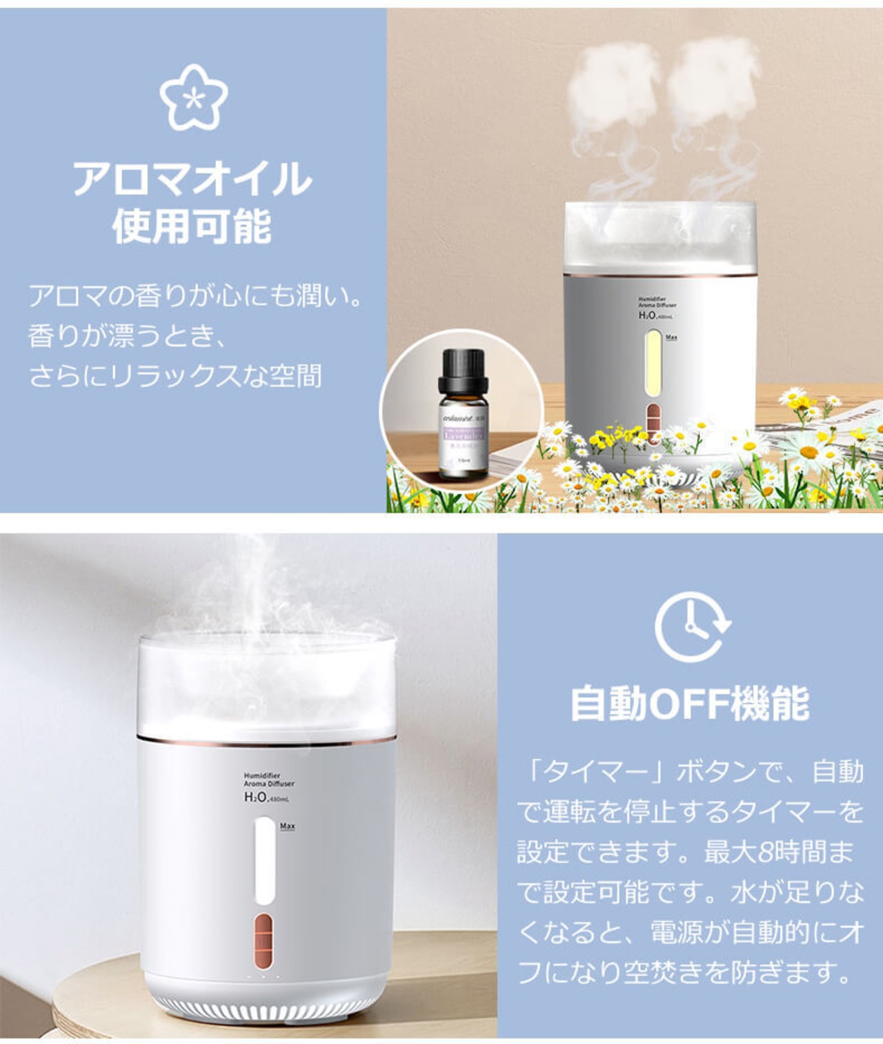 加湿器 アロマ 除菌 抗菌加湿器 大容量 上部給水 静音卓上 空焚き防止 自動オフ機能 美肌効果