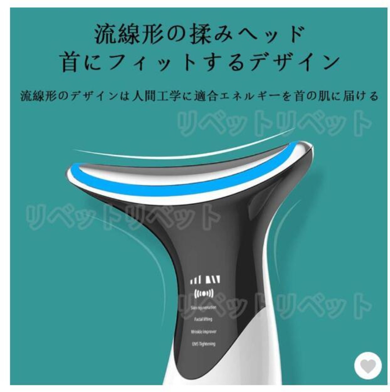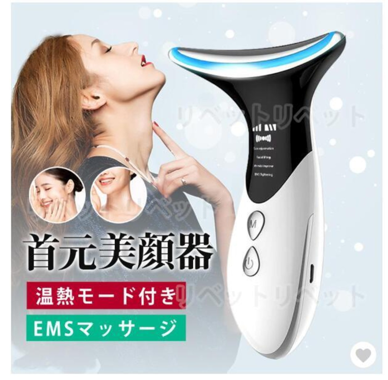首美顔器 EMS超音波美顔器 リフトアップ LED 美容家電 ネックケア 温熱モード USB充電式 EMS微電流