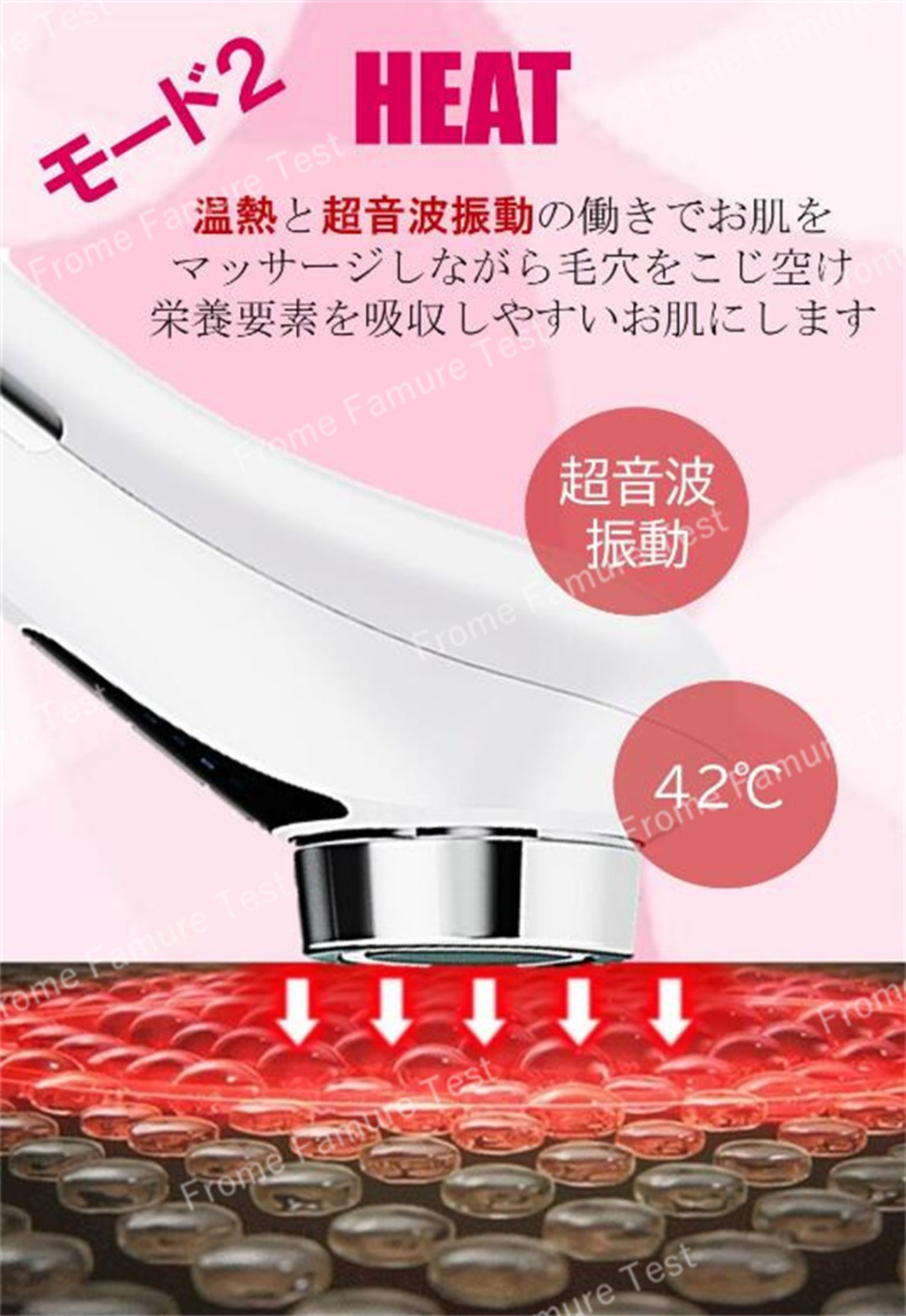 2.HEATモード(42℃温熱と超音波振動)温熱と超音波振動の働きでお肌をマッサージしながら毛穴をこじ空け栄養要素を吸収しやすいお肌にします