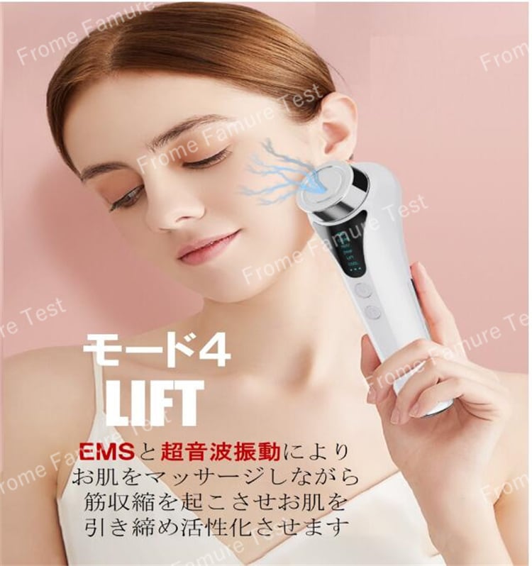 4.LIFTモード(EMSと超音波振動)EMSと超音波振動によりお肌をマッサージしながら筋収縮を起こさせお肌を引き締め活性化させます