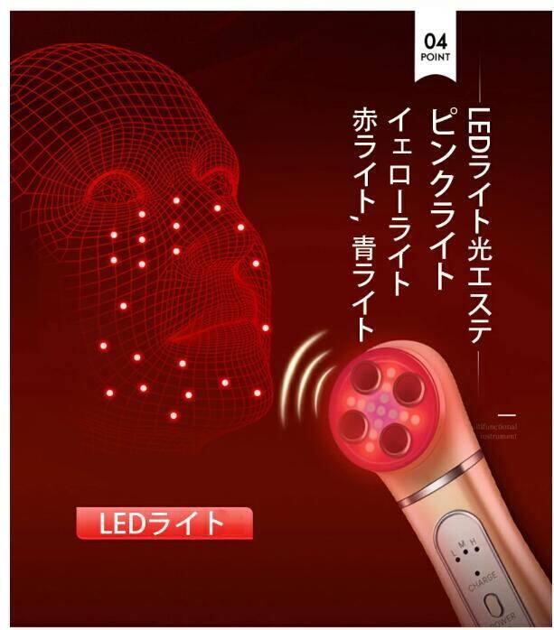 美顔器 目元 首LED 5in1 フェイシャル 小顔 ems 毛穴ケア イオン導入美肌 フェイスライン 角質ケア