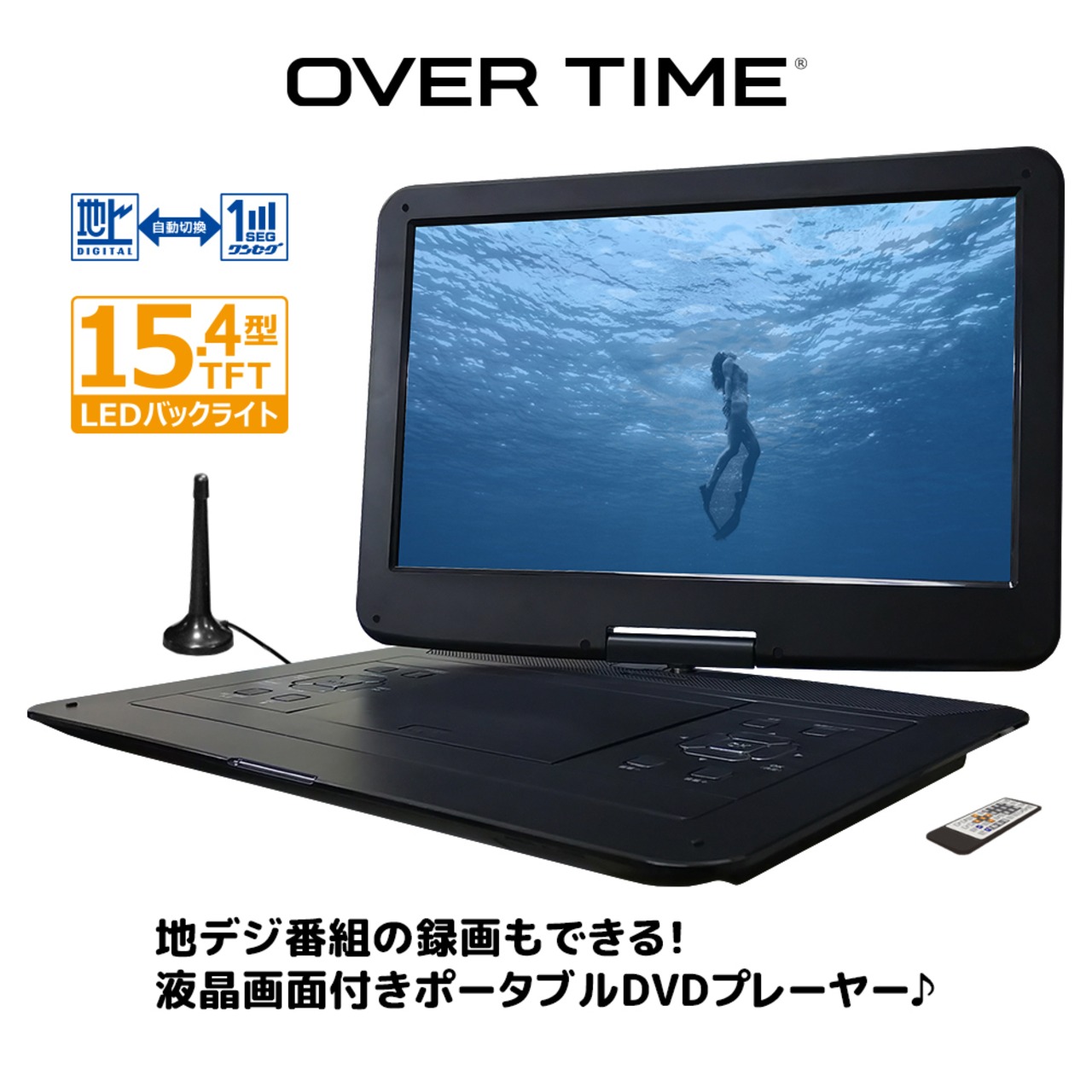 録画機能付!15.4インチ フルセポータブルDVDプレーヤー