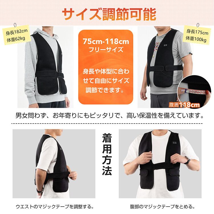 電熱ベスト 加熱ベスト ヒーターベスト 急速発熱 3段階温度調節 超軽量 防寒着 フリーサイズ