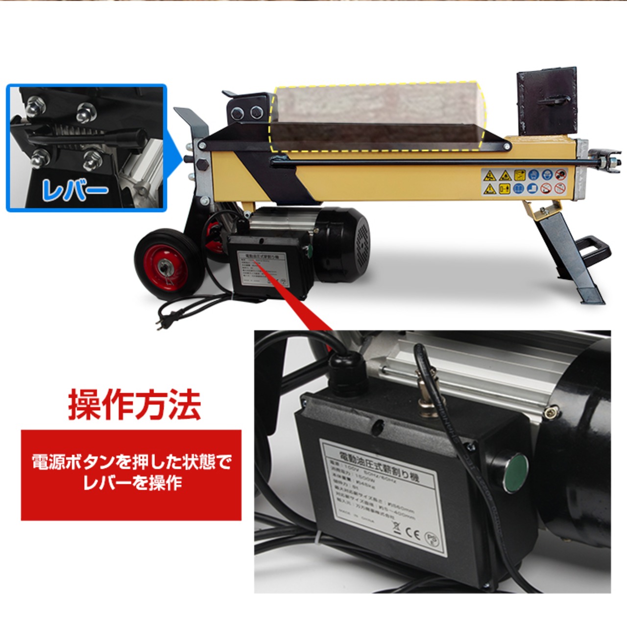 薪割り機 8t 電動 油圧式 四分割 カッター 直径400mmまで対応 タイヤ キャスター 強力