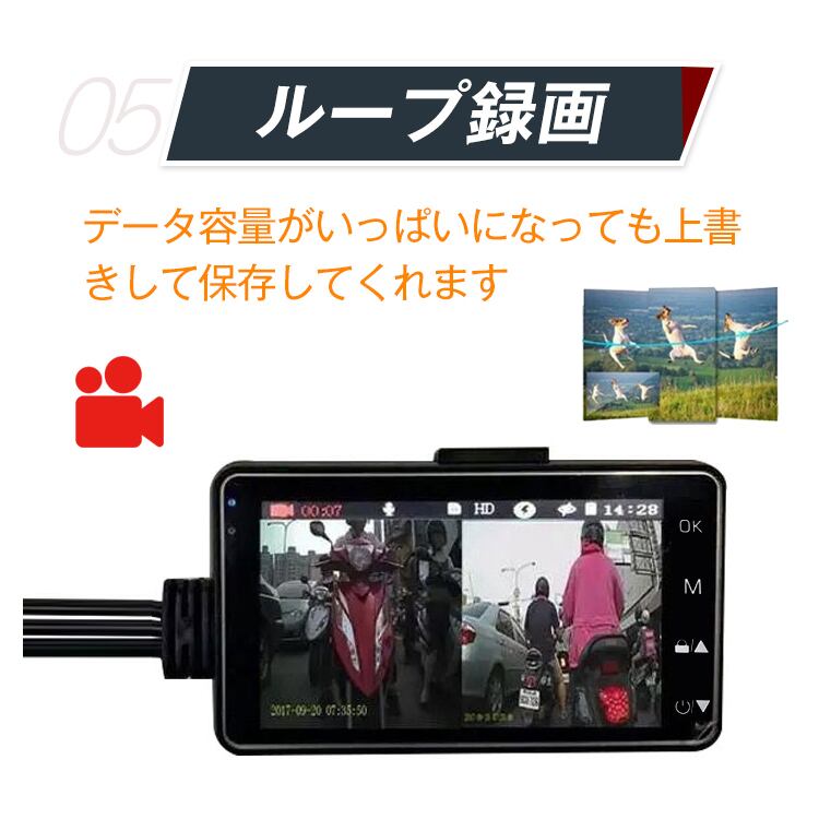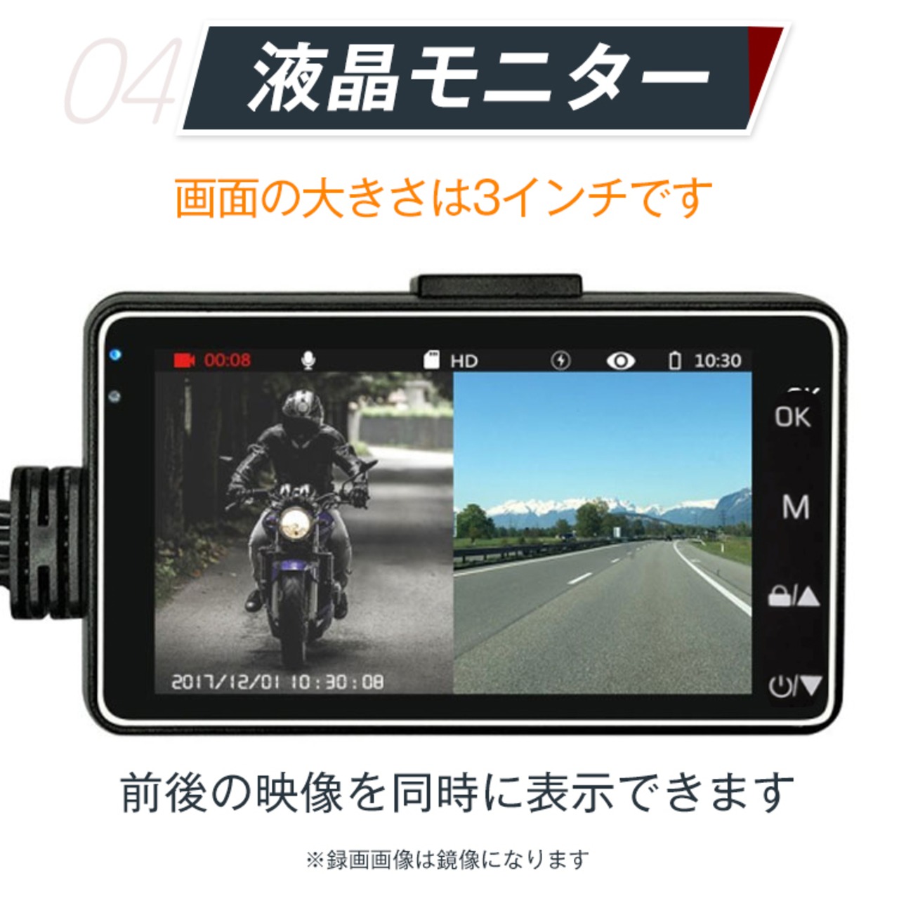 バイク ドライブレコーダー ドラレコ 前後 2カメラ 安い オートバイ 3インチ 記録