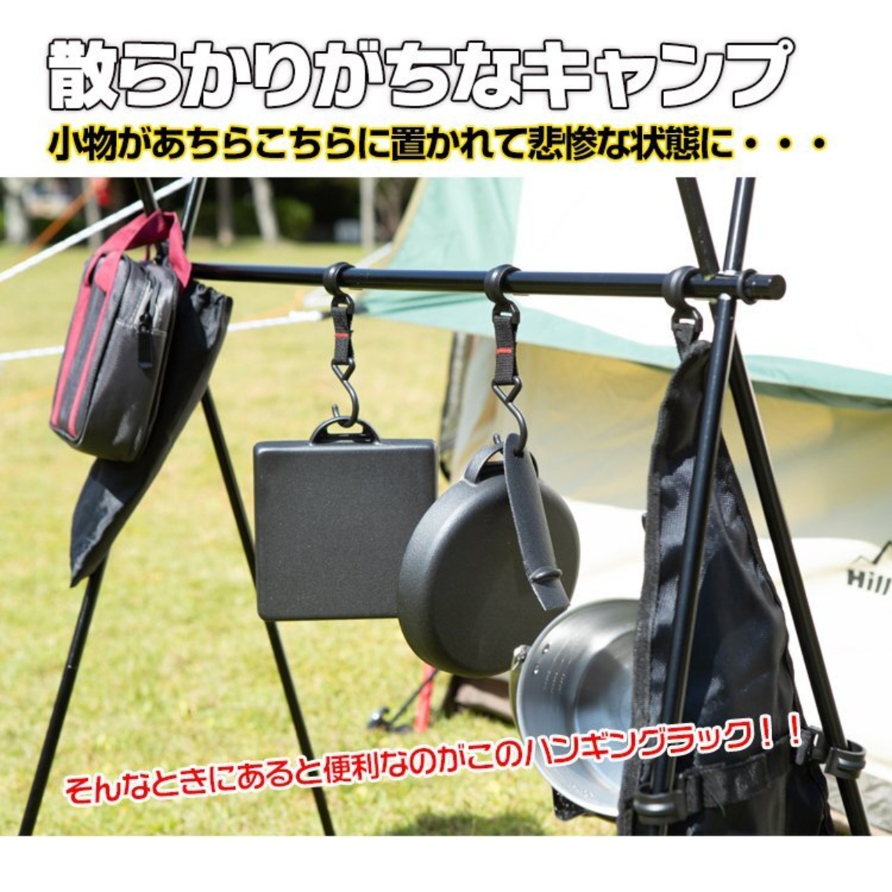 ■食器やランタン、キャンプ雑貨などを掛けられるアウトドアラック