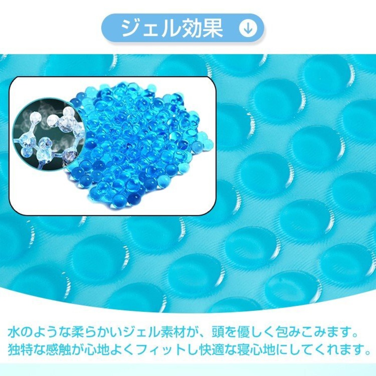 ■柔らかいジェル素材が、頭を優しく包みこみ独特な感触が心地よくフィットし快適な寝心地にしてくれます。