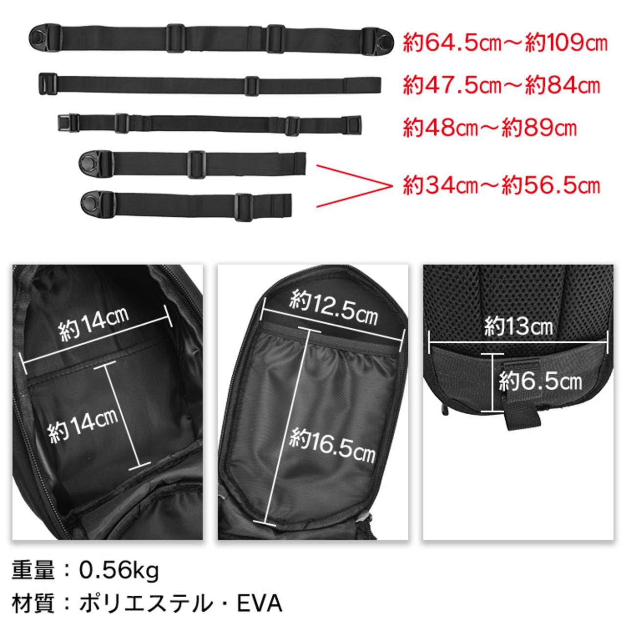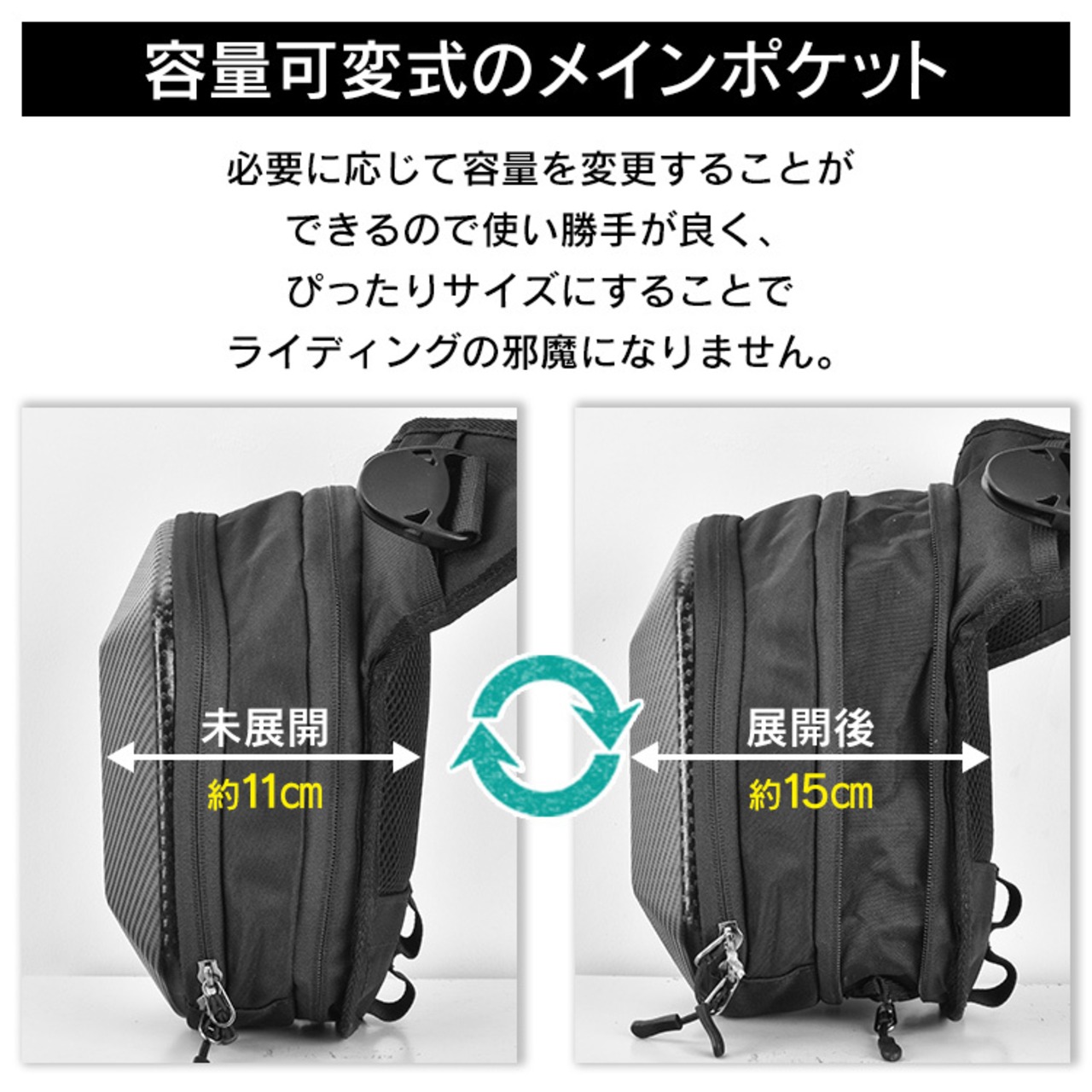 ■ウエストと脚部でしっかり固定できるので乗車姿勢の邪魔にならない!