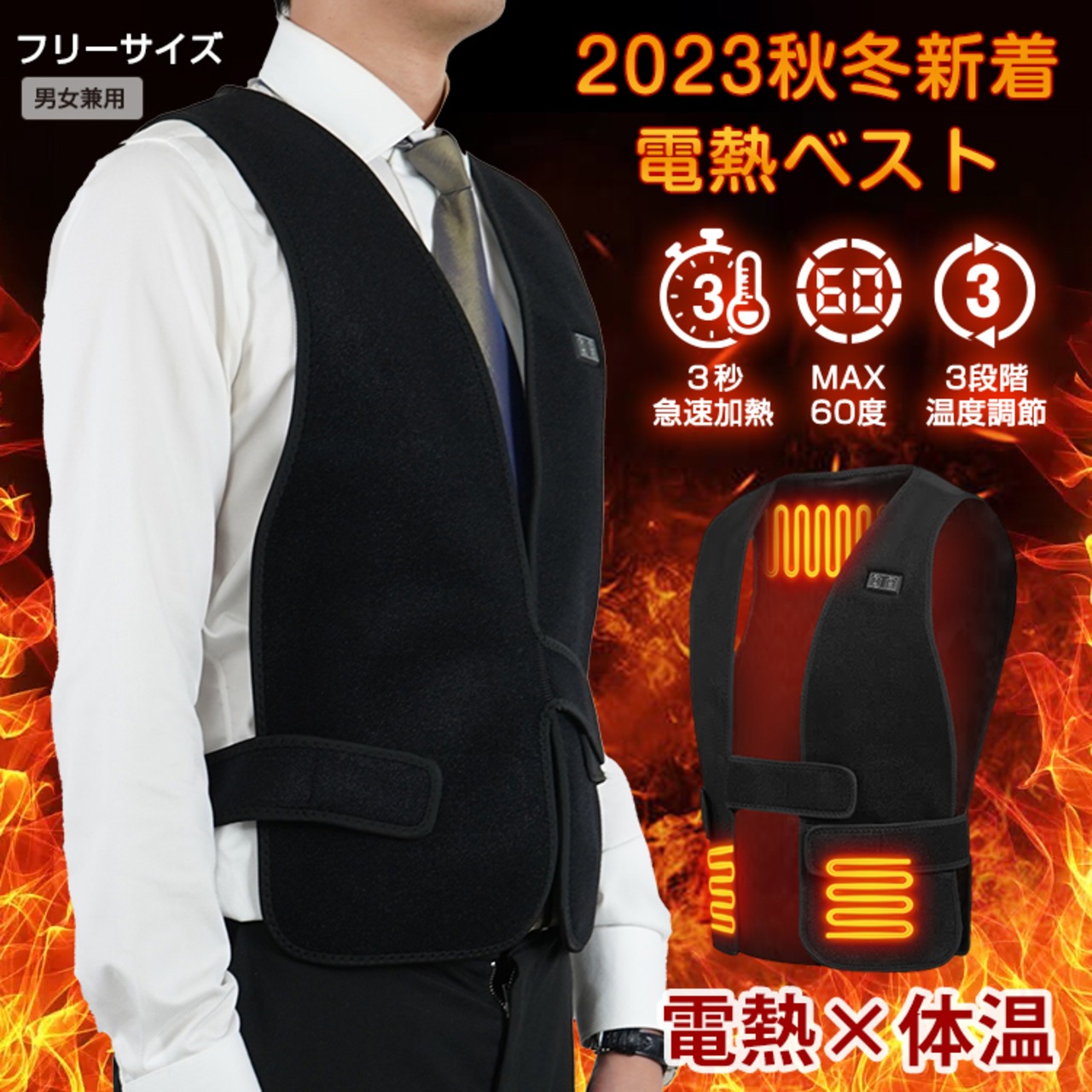 電熱ベスト 加熱ベスト ヒーターベスト 急速発熱 3段階温度調節 超軽量 防寒着 フリーサイズ