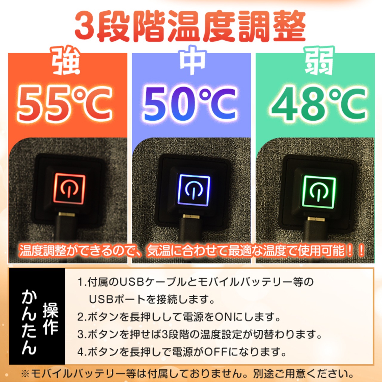 3段階温度調整できるので、気温に合わせて最適な温度で使用可能!