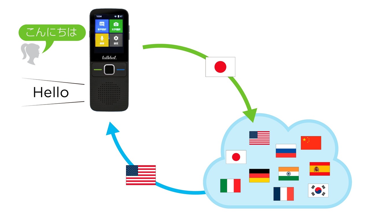 Wi-Fi接続しインターネット上の翻訳サーバーを介して 翻訳します。
