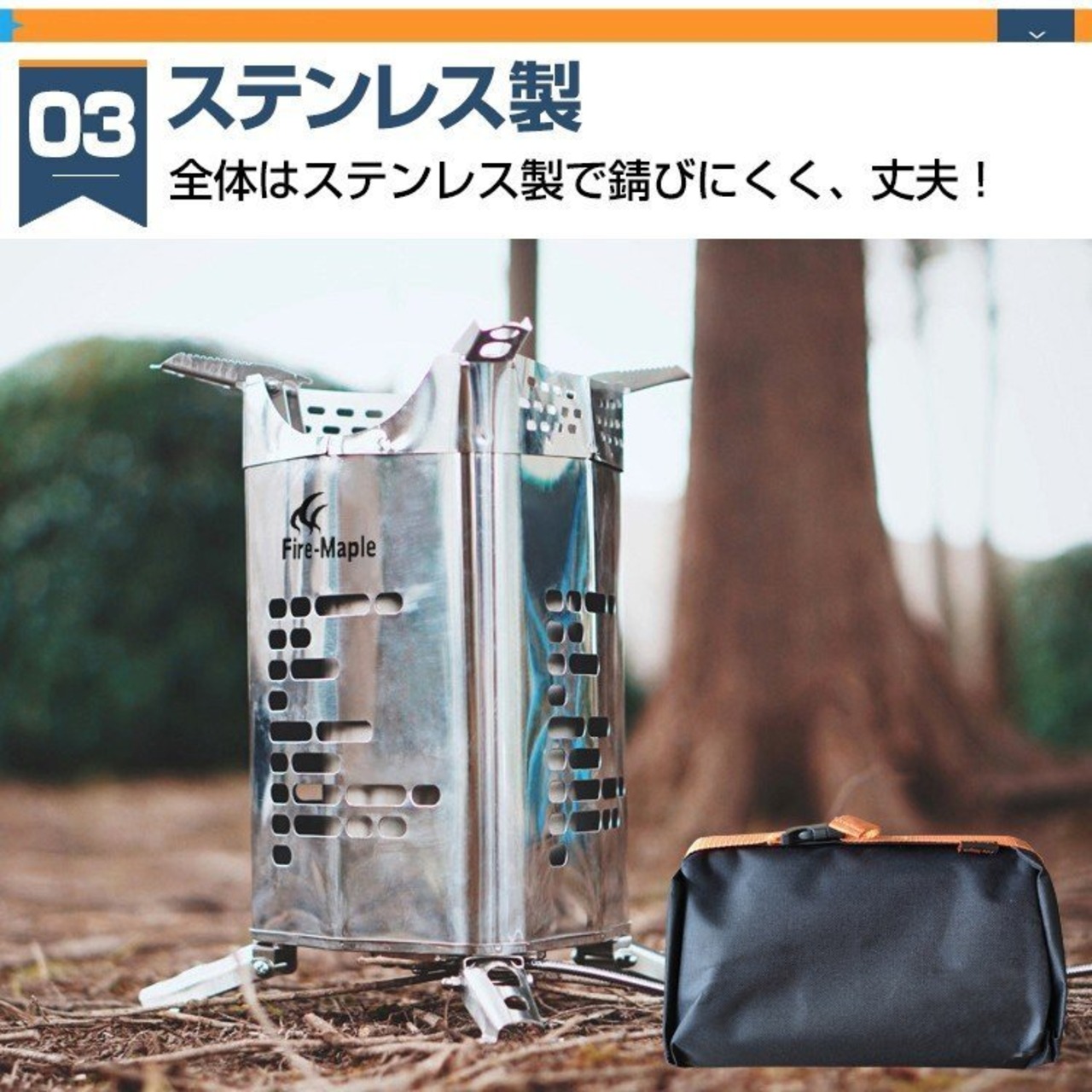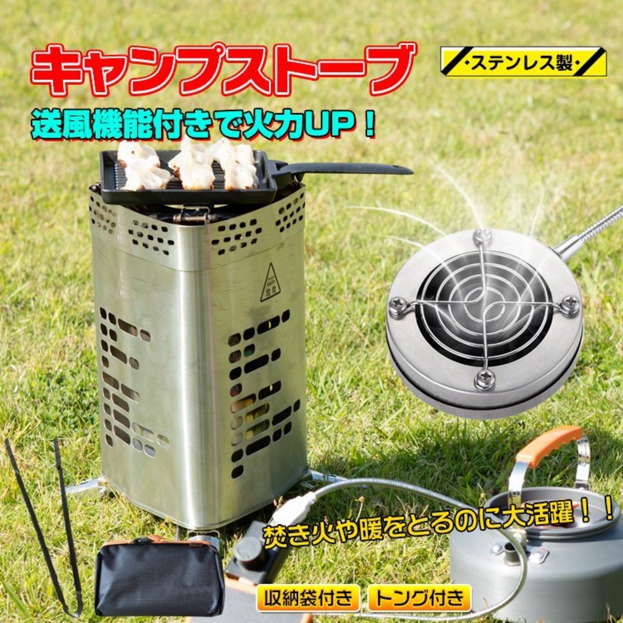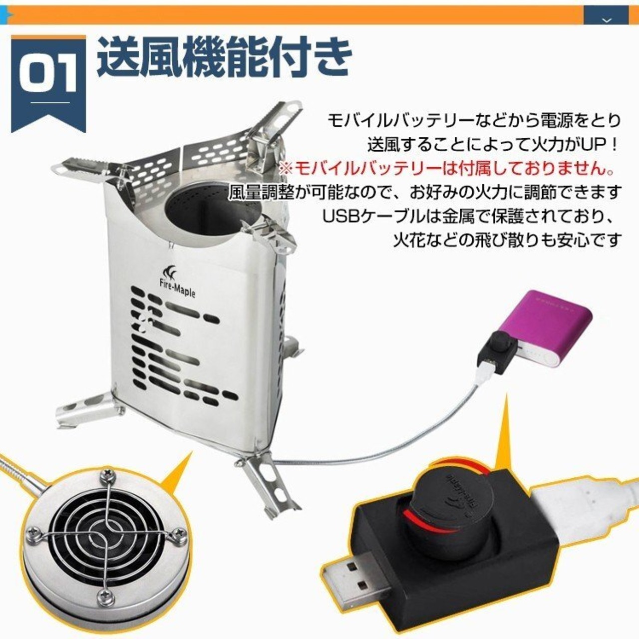 キャンプストーブ 焚き火 送風 風量調整 USB ステンレス 五徳 調理 料理 収納袋付