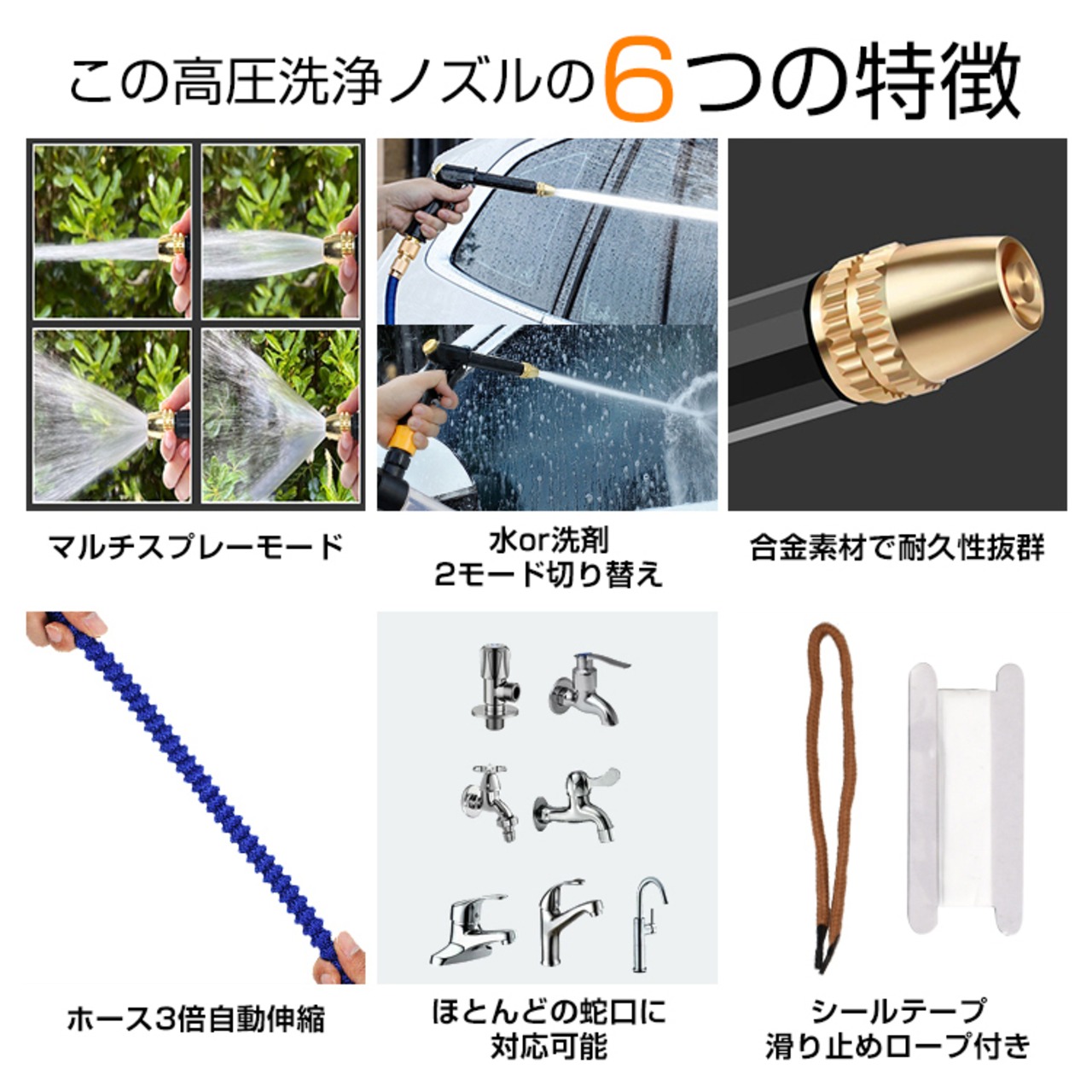 【素材】:ノズル/プラスチック・合金・人工ゴム ジョイント/アルミニウム ホース/ABS樹脂・人工ゴム