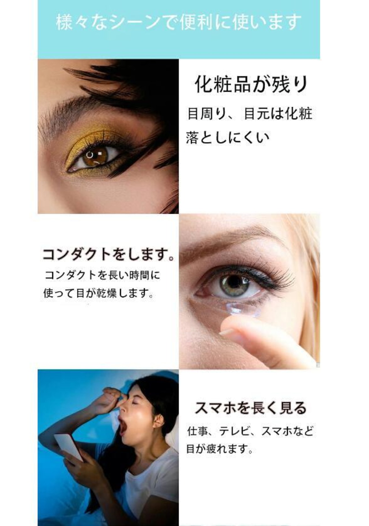 •全ての種類の洗眼液を入れて使用できます。洗眼液がない場合は生理食塩水も対応。