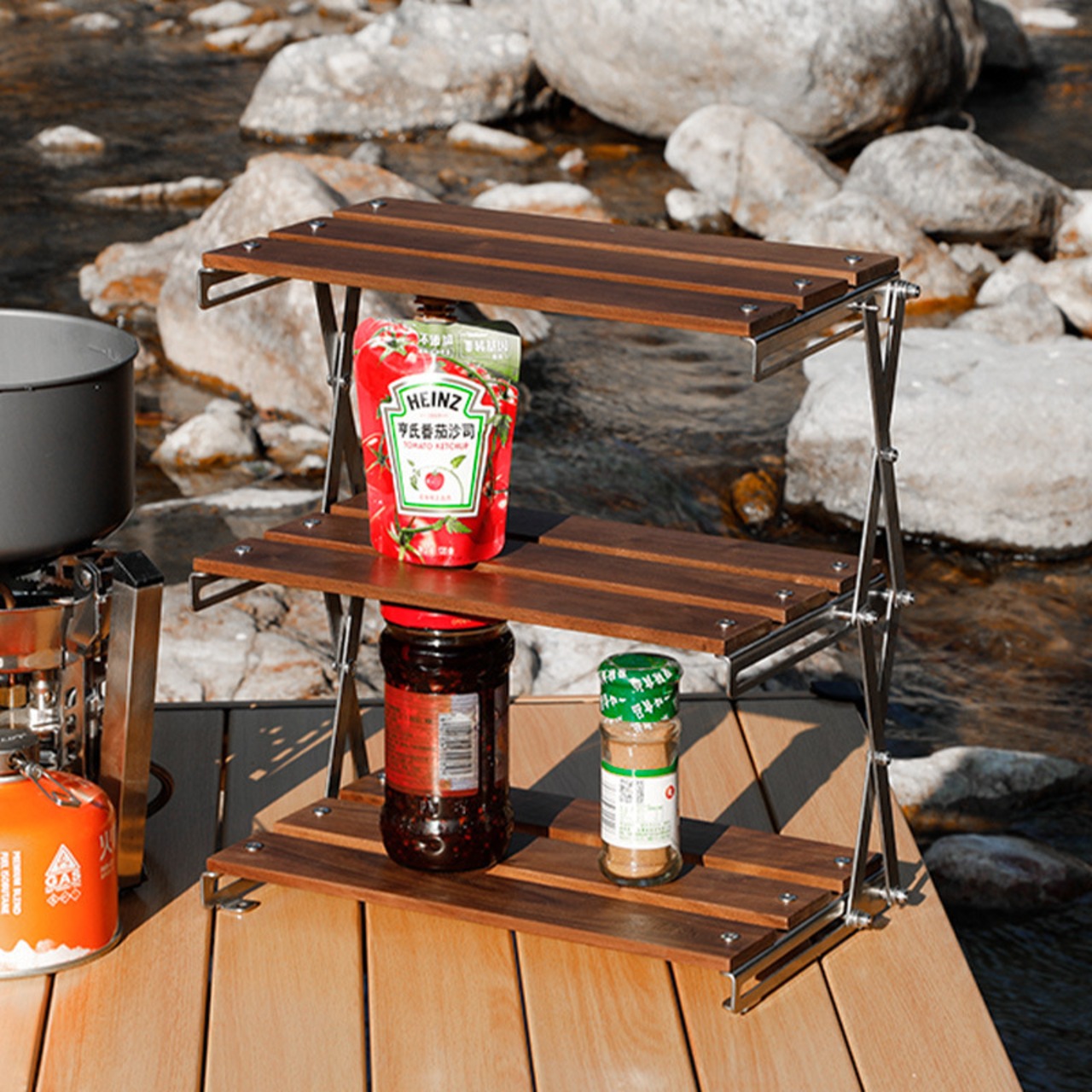 屋外キャンプ折りたたみテーブル、棚、ポータブル、小物配置棚、