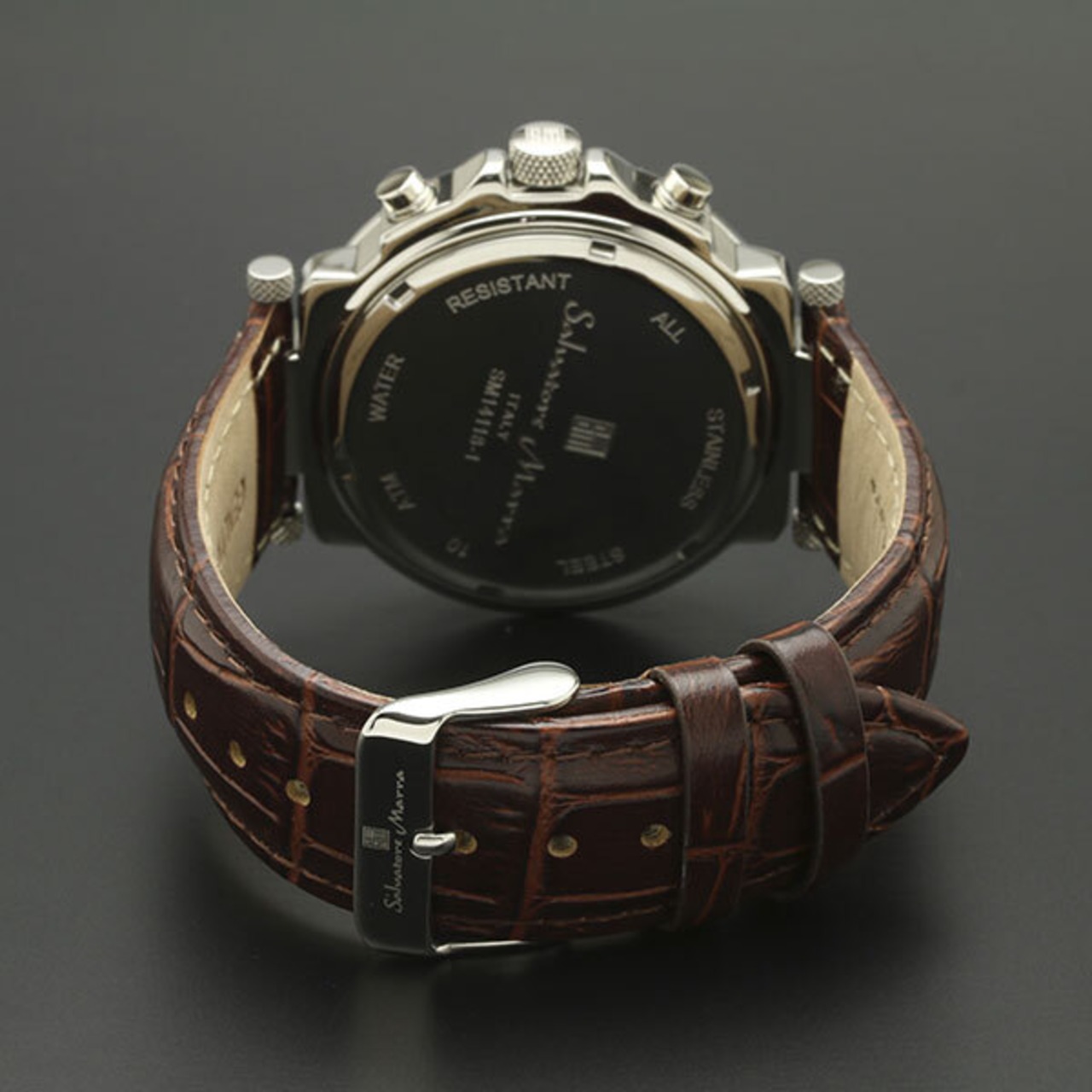 正規品Salvatore Marra腕時計サルバトーレマーラ SM14118S-SSWH 10気圧多軸クォーツ 革ベルト メンズ腕時計