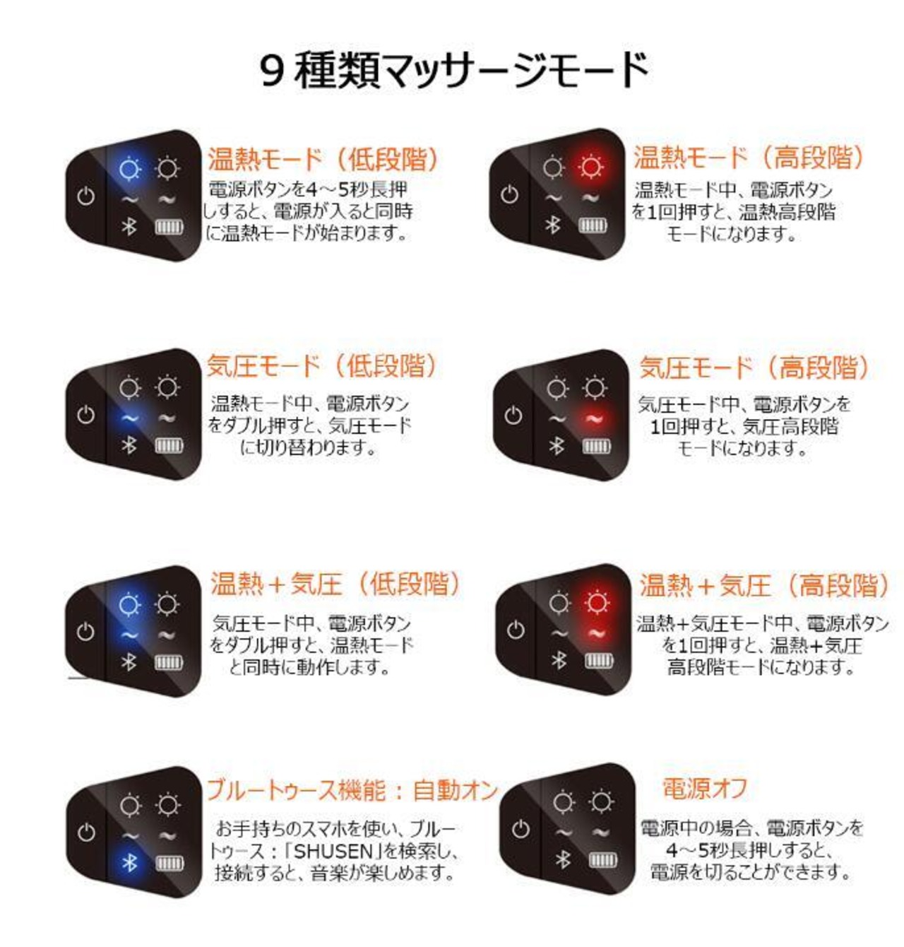 温熱・マッサージは「低」と「高」の2パターンあり、 お好みに合わせて設定して使用することができます。