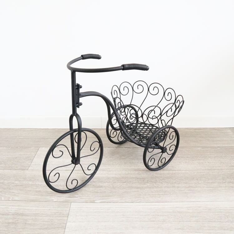 自転車の形をしたかわいいブラックアイアンのフラワースタンド(プランター)