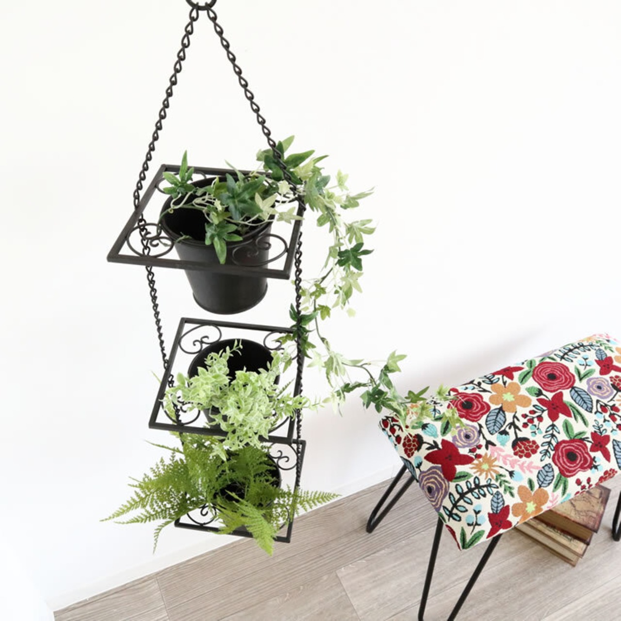 天井からぶら下げるタイプのアイアン製バスケット(プランター)