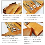 【仕様】:フラップ式小銭入れ×1、マチ付き札入れ×1、カードポケット×6、