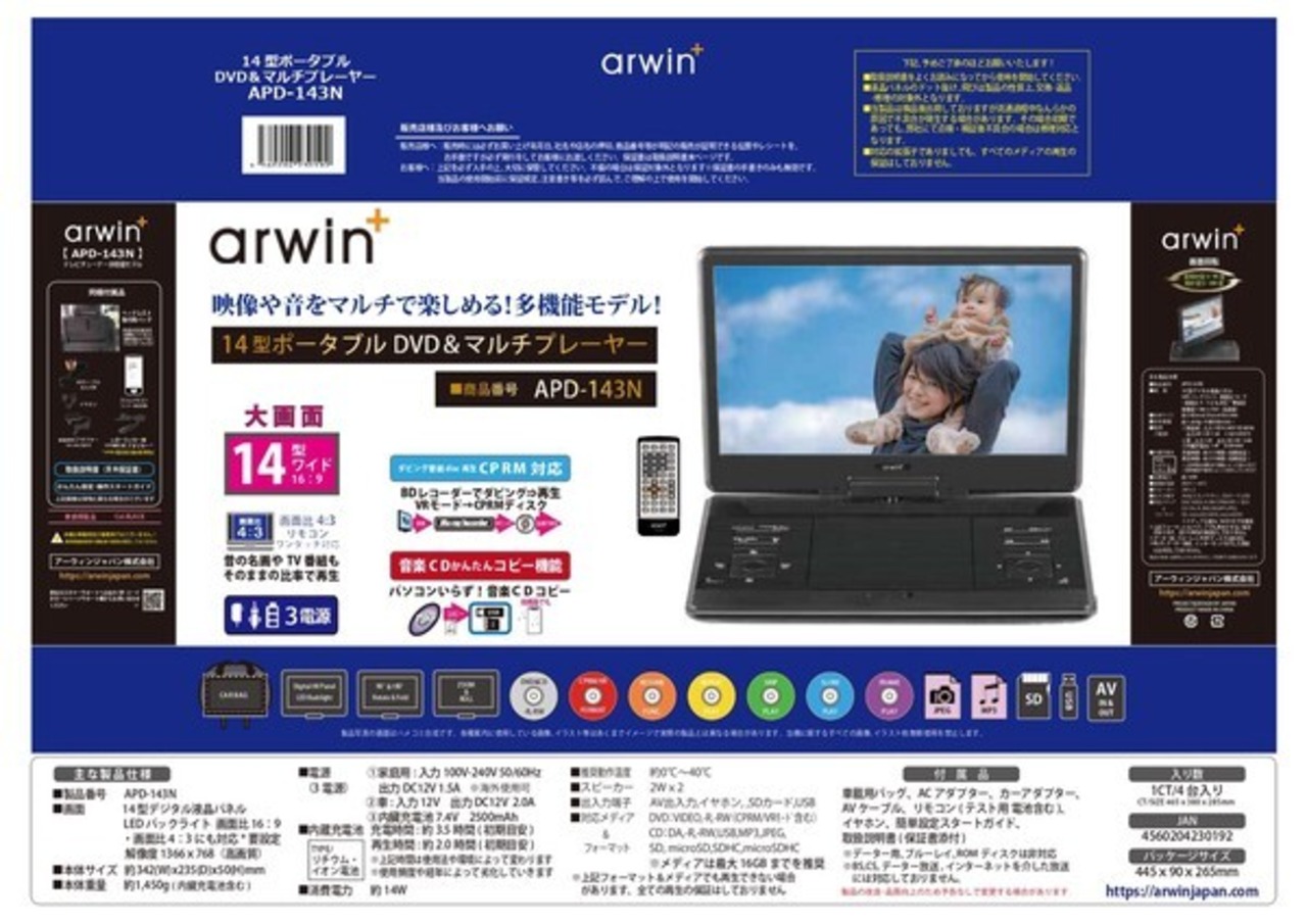 アーウィン 14型ポータブルDVD