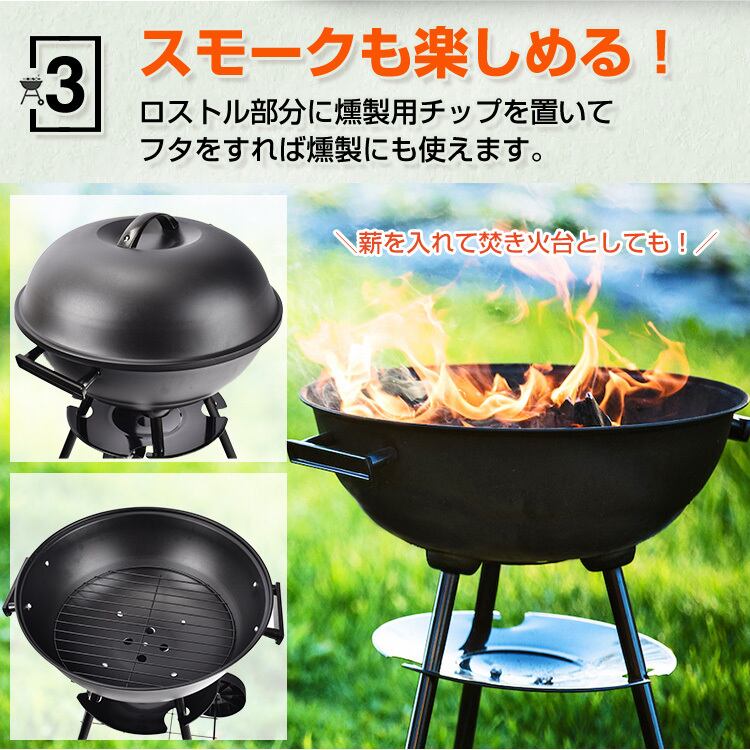 バーベキューグリル コンロ 蓋付き 丸型 燻製器