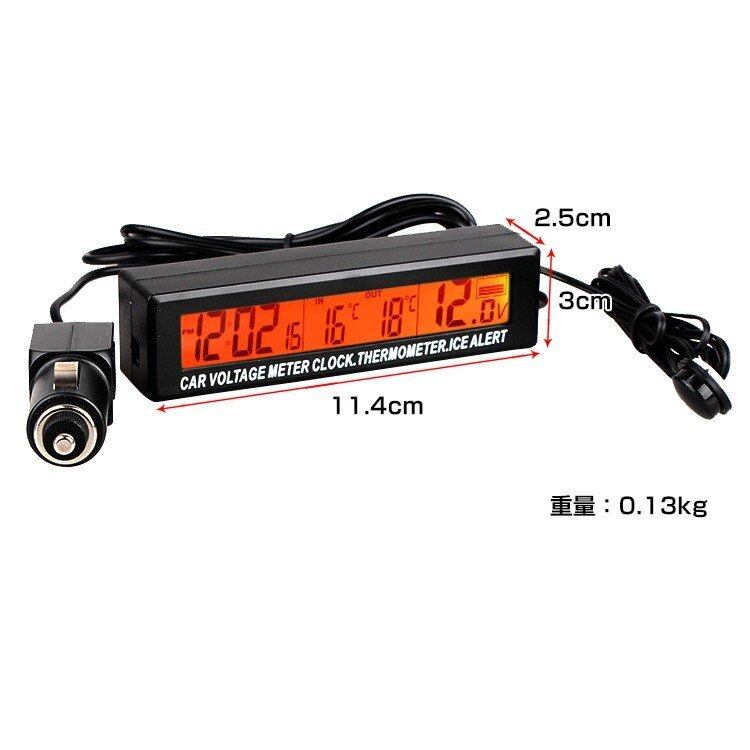 電圧計 デジタル バッテリーチェッカー 時計 温度計 シガーソケット 車内 屋外
