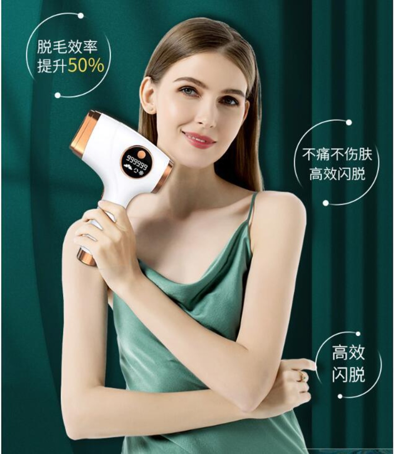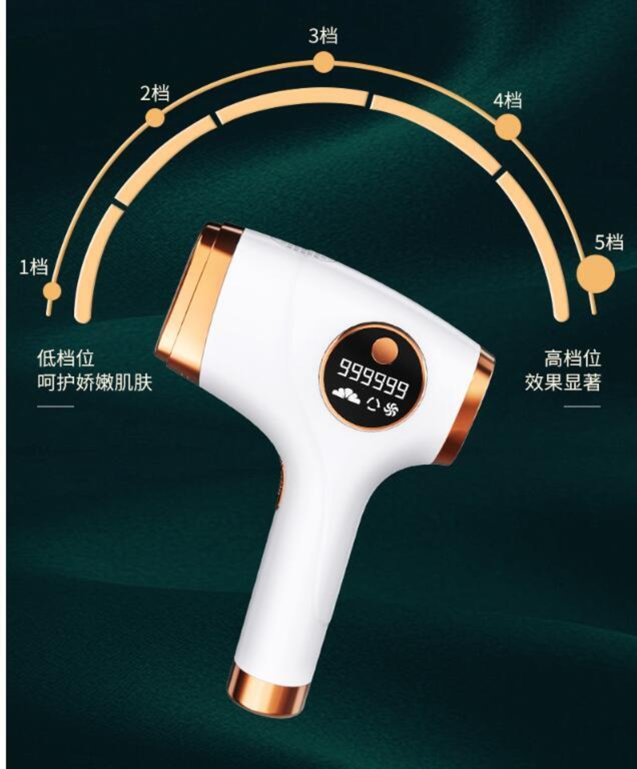 照射強度は5段階に調整可能で、肌の調子や肌の明るさに応じてフラッシュレベルを使い分け、肌の耐性に応じて、不快感や痛伴わない脱毛を実現します。