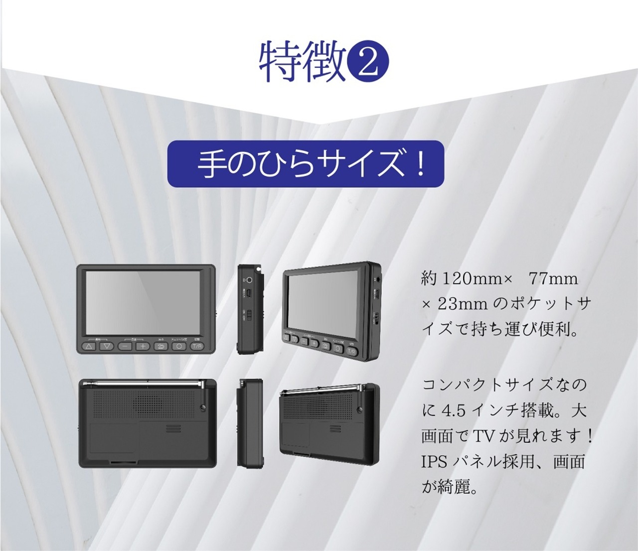 4.5インチ ワンセグTVラジオ OT-1TV45S 携帯テレビ 4.5インチ ラジオ搭載 IPS液晶 ブラック