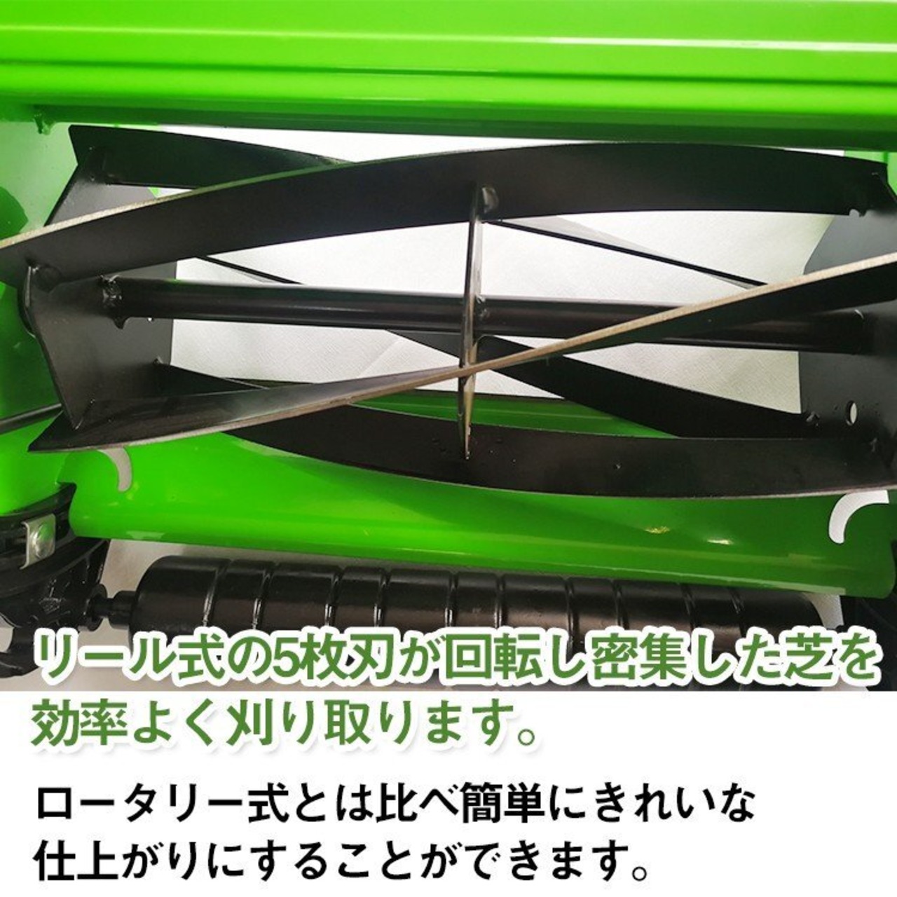 ■リール式の5枚刃が回転し密集した芝を効率よく刈り取ります。